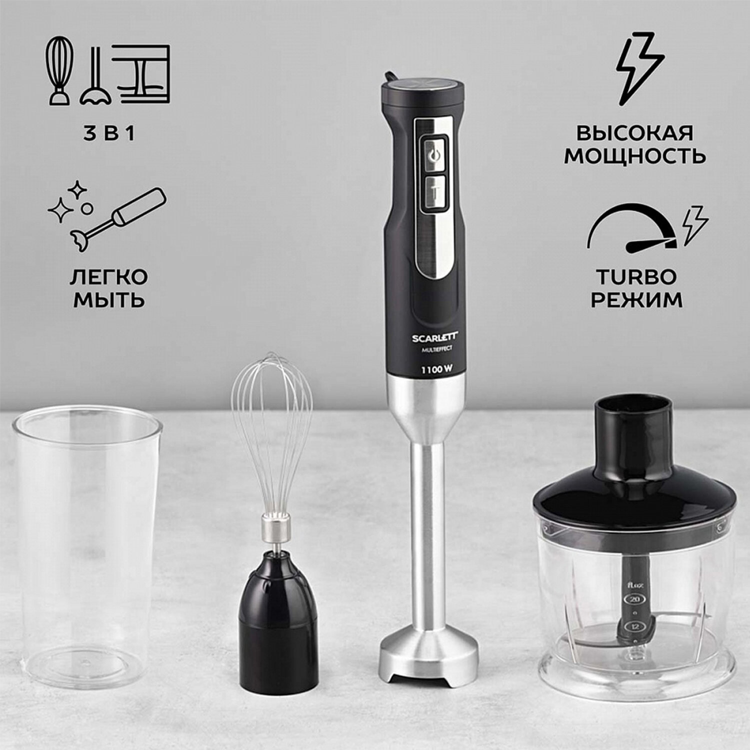 Блендер погружной SCARLETT SC-HB42F61, 1100 Вт, 25 скоростей, 3 насадки, стакан, черный
