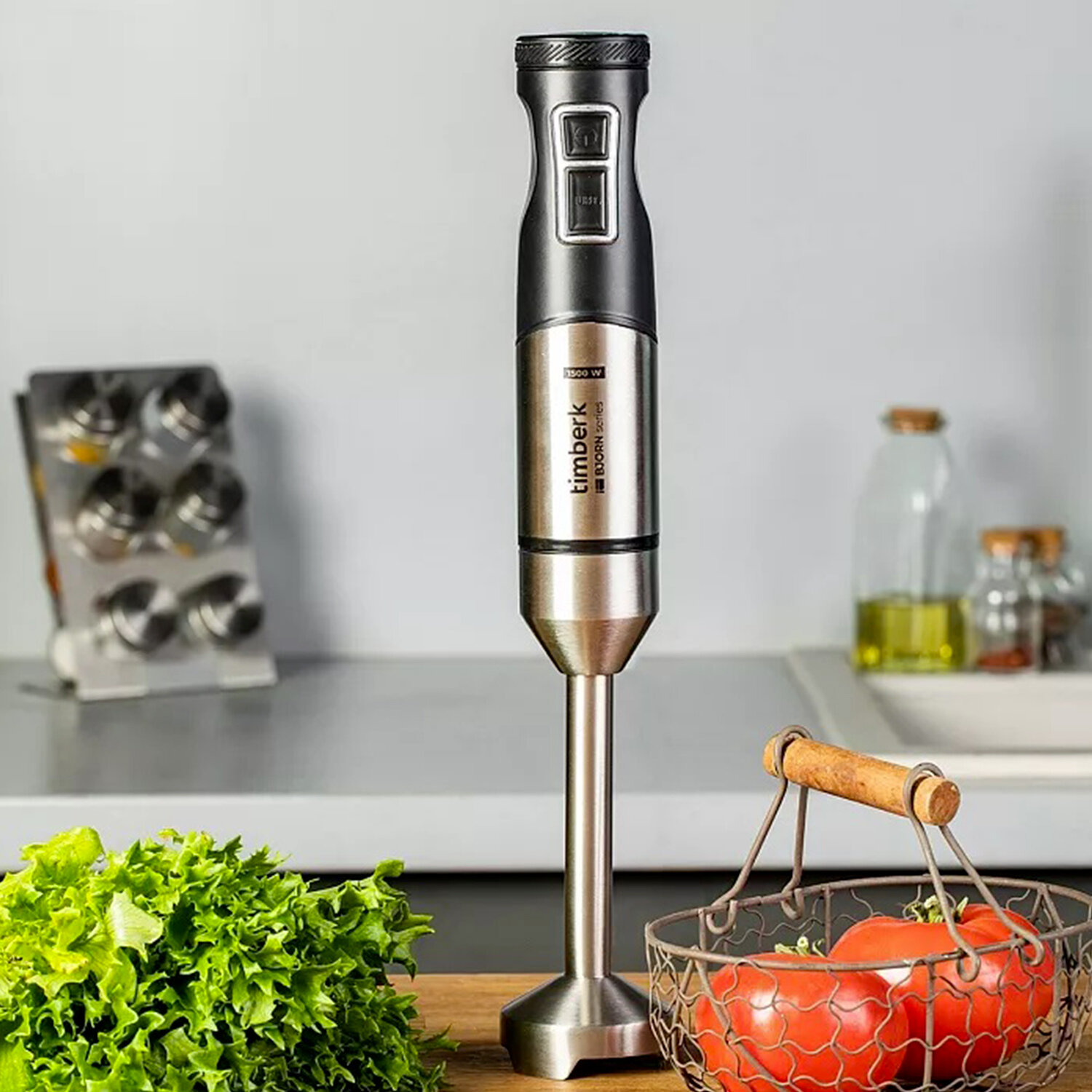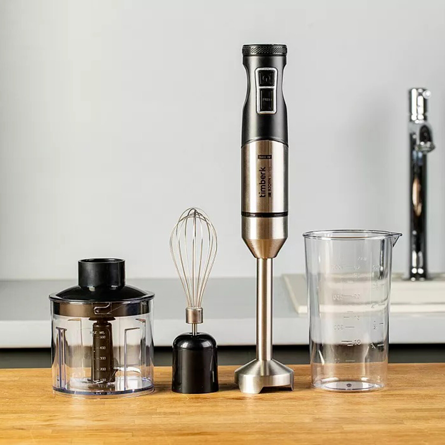 - Блендер погружной TIMBERK T-HB42F01, 1500 Вт, 9 скоростей, 3 насадки, стакан, черный