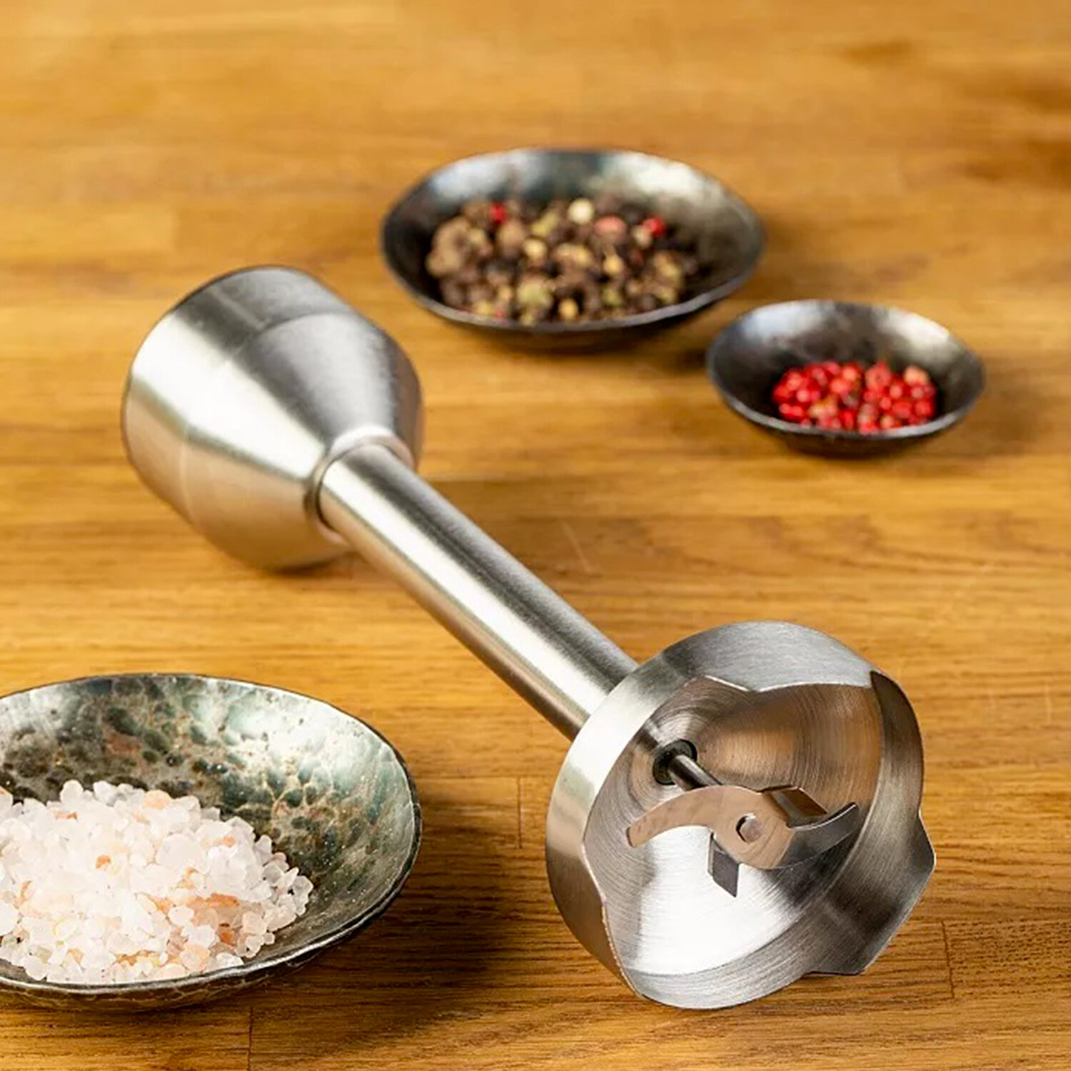 Цельнолитой нож из нержавеющей стали обеспечивает равномерное измельчение продуктов.