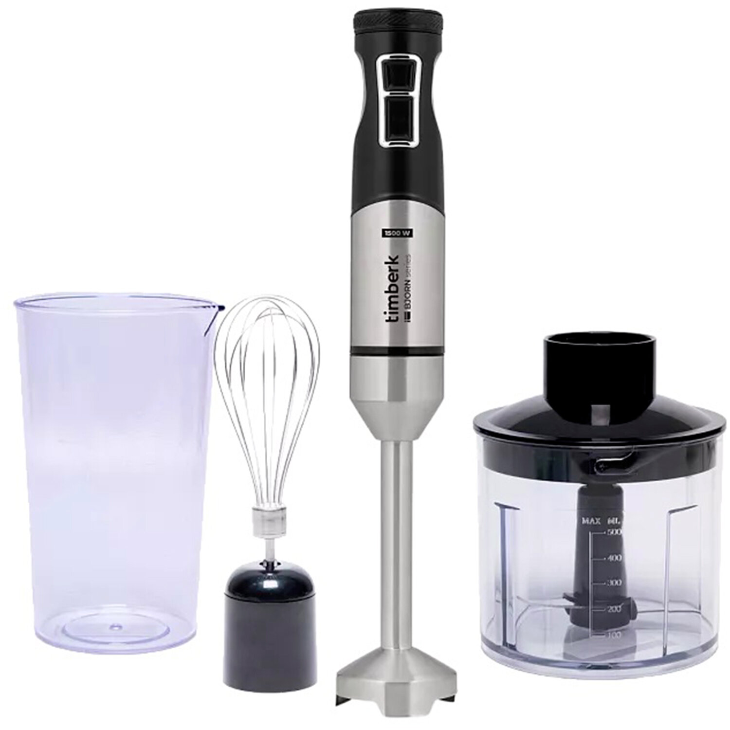 Блендер погружной TIMBERK T-HB42F01, 1500 Вт, 9 скоростей, 3 насадки, стакан, черный