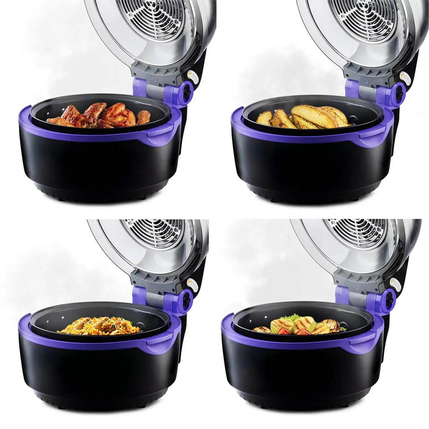 Вентилятор, расположенный в верхней части аэрогриля, обеспечивает циркуляцию горячего воздуха внутри рабочей ёмкости. Благодаря этому продукты равномерно обжариваются со всех сторон, оставаясь нежными внутри и покрываясь хрустящей корочкой снаружи.