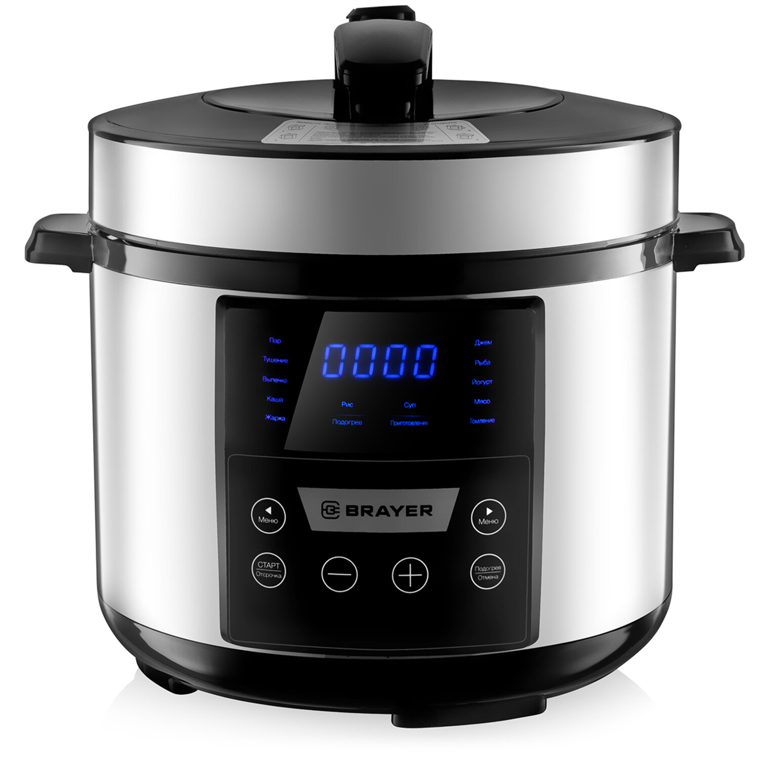 Мультиварка-скороварка BRAYER BR2400, 900 Вт, 5 л, 12 программ, серебро
