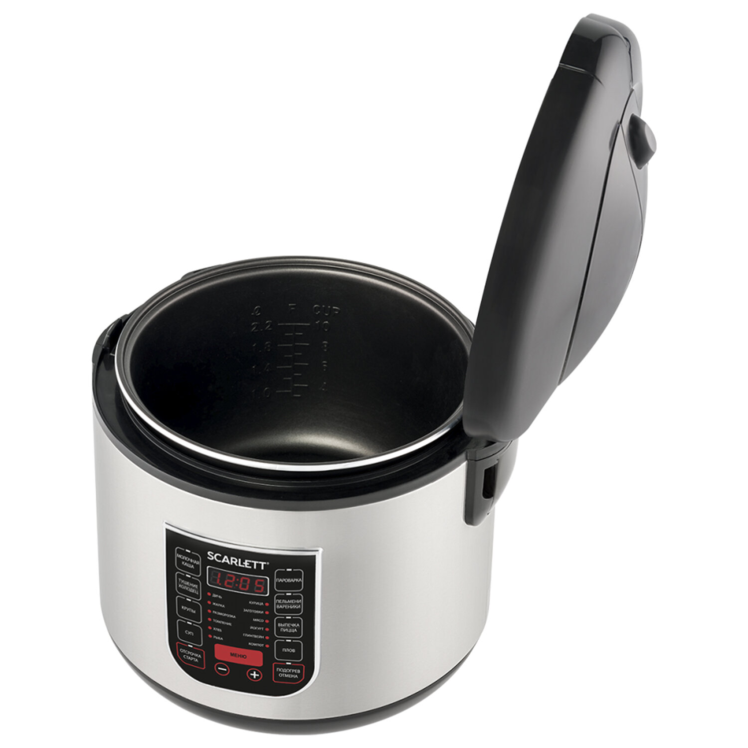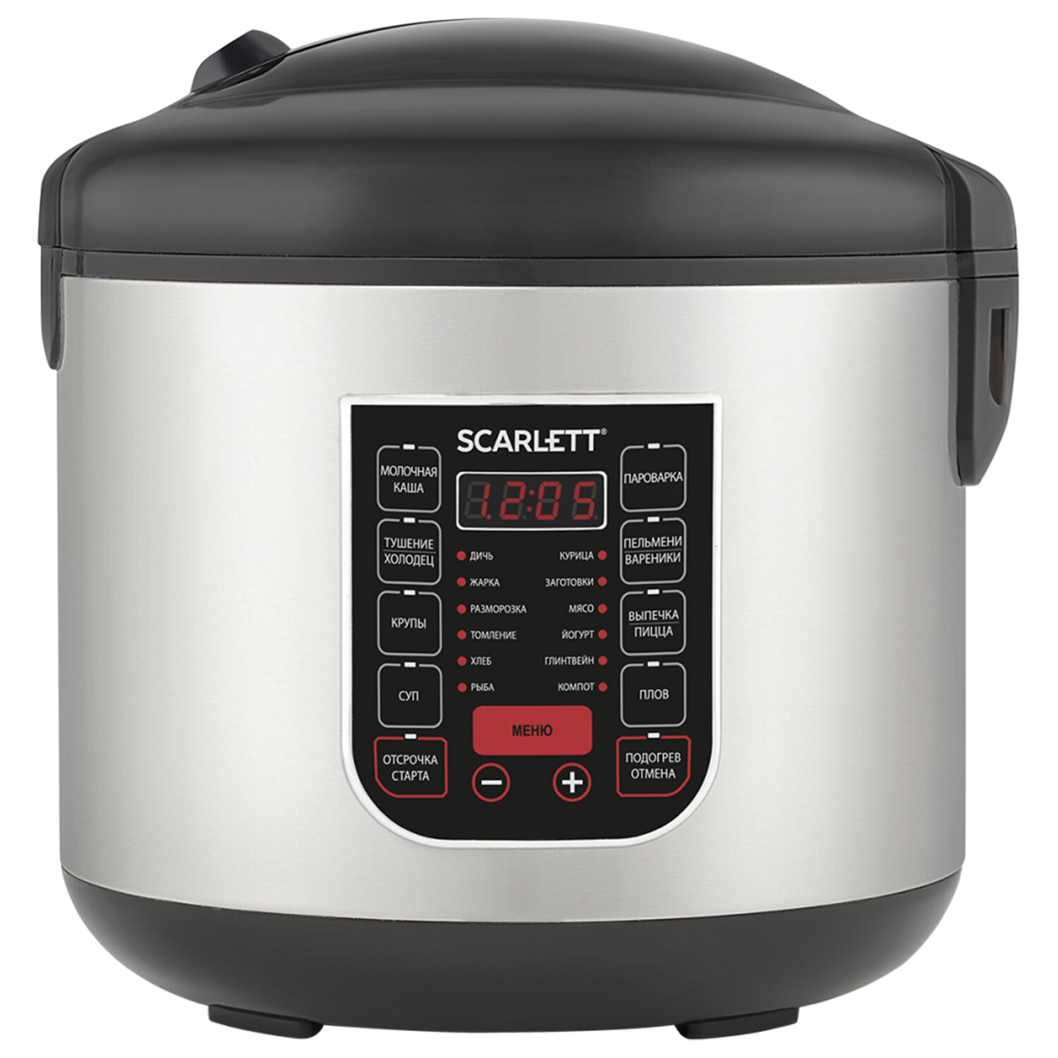Производитель на свое усмотрение и без дополнительных уведомлений может менять комплектацию, внешний вид, страну производства и технические характеристики модели. Мультиварка SCARLETT SC-MC410S27, 900 Вт, 5 л, 22 программы, серебро/черная