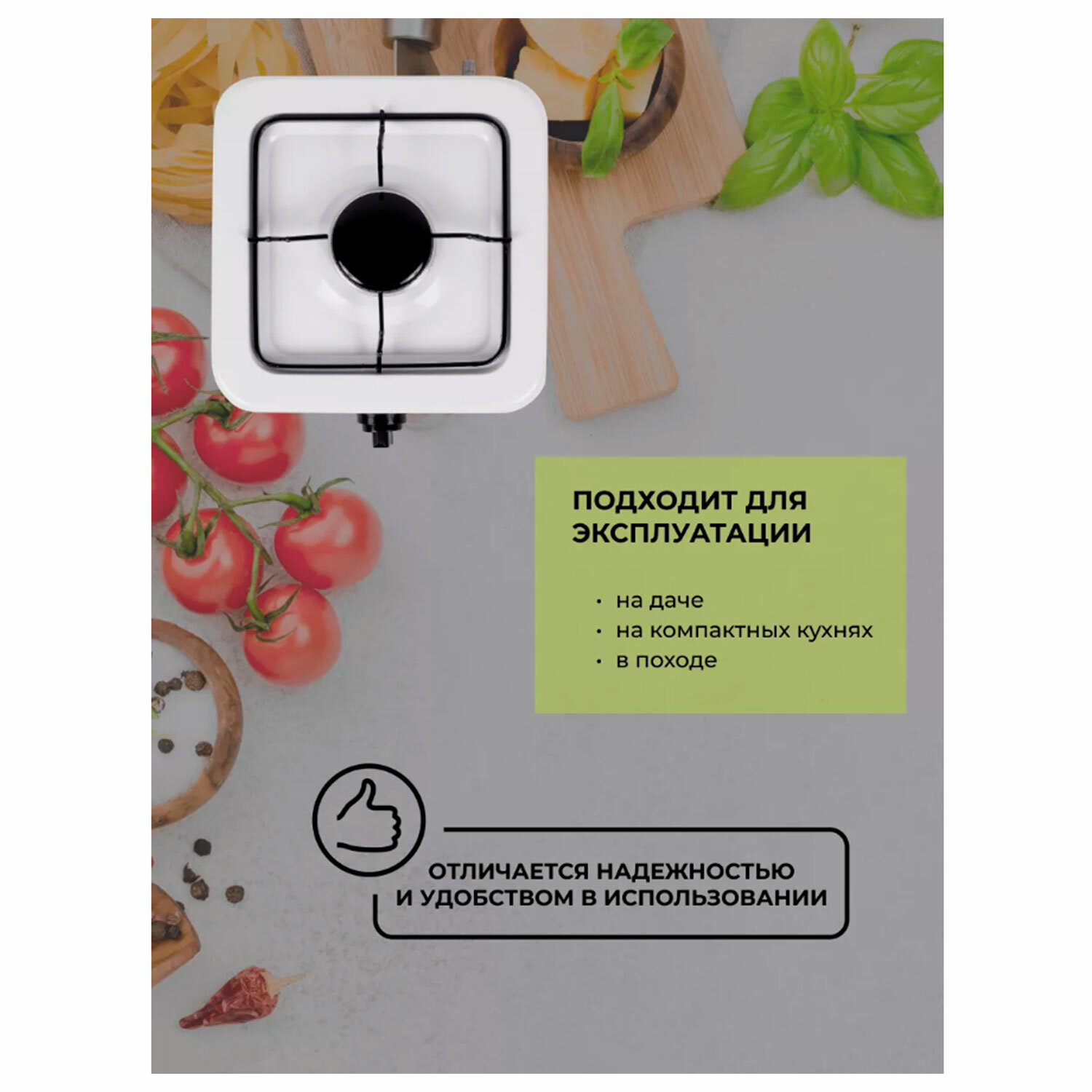- Настольная газовая плита CENTEK CT-1520, 1 конфорка, сменная форсунка (баллон/магистраль), белая