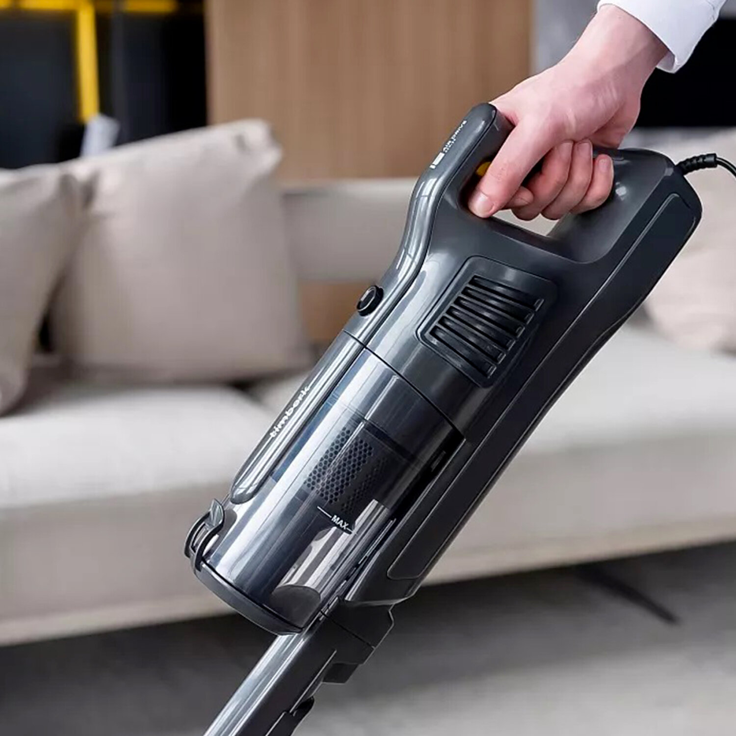 - Пылесос вертикальный TIMBERK T-VCH-53, 2 в 1, мощность 600 Вт, контейнер 0,8 л, черный