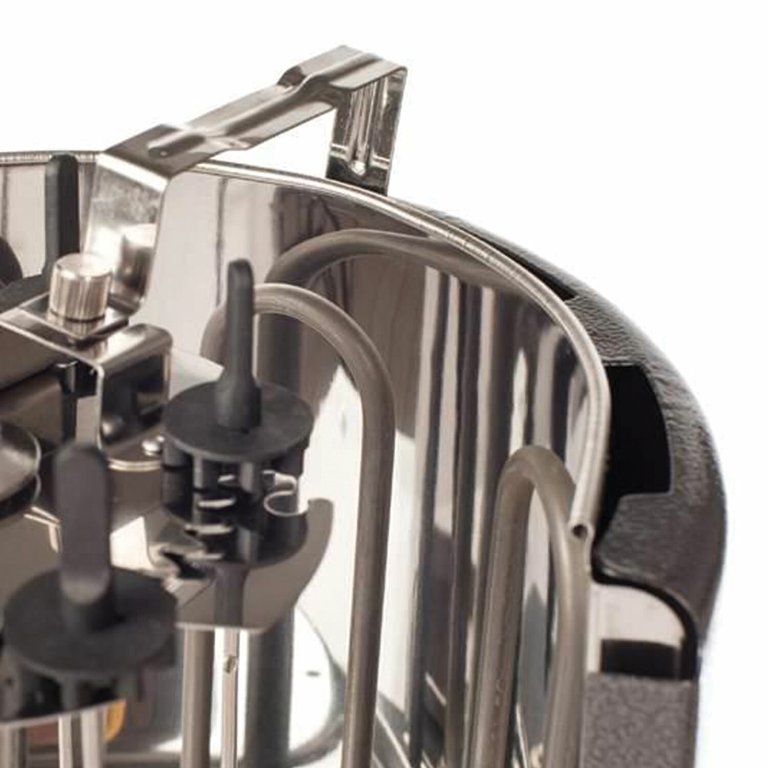 Боковые шампуры оснащены удобными ручками из ненагревающегося материала, поэтому их можно брать руками, не боясь обжечься. В задней части шашлычницы помещён отражательный экран, он съёмный и свободно вынимается вверх для чистки.