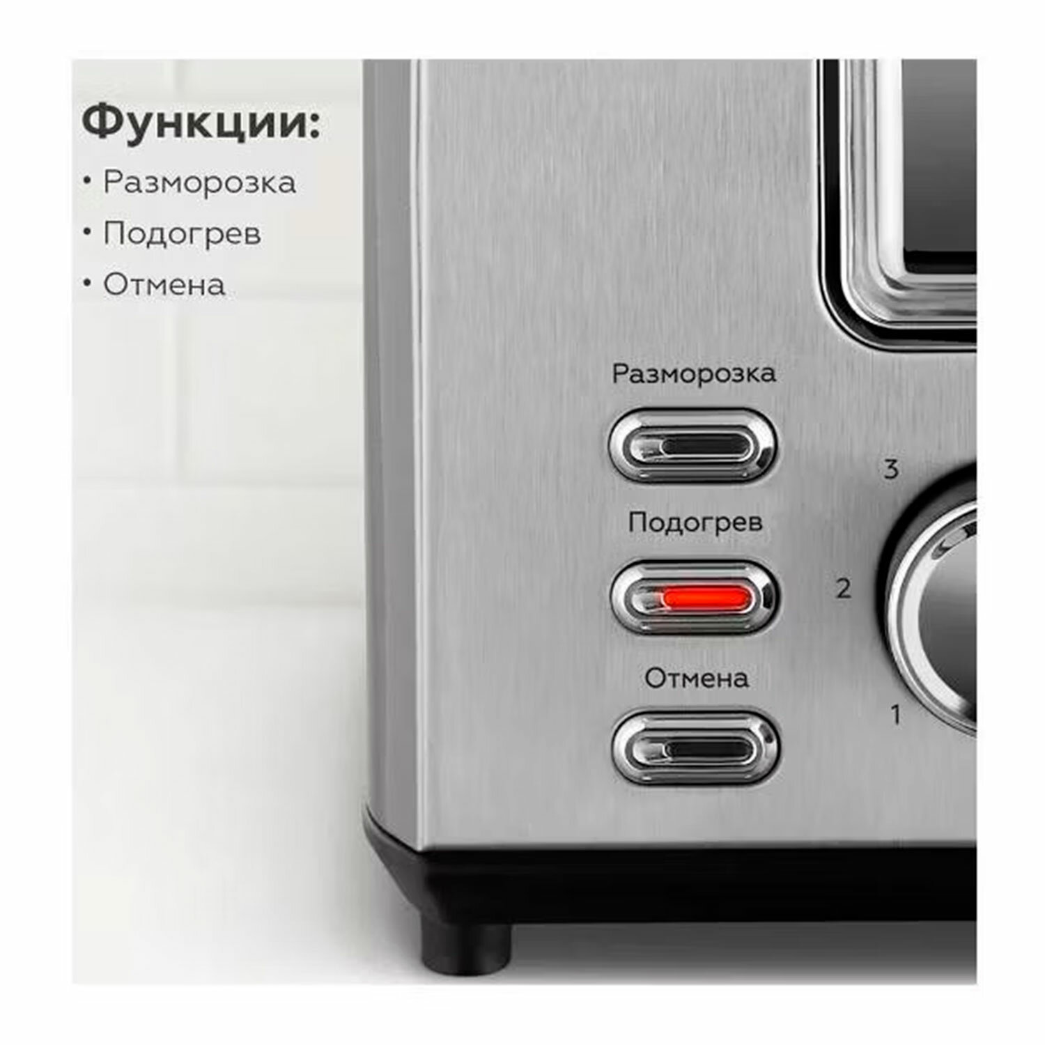 Если вы храните хлеб в холодильнике, функция размораживания и подогрева поможет подготовить его к употреблению. Кроме того, тостер с корпусом из нержавеющей стали снабжен функцией подогрева уже готовых тостов.