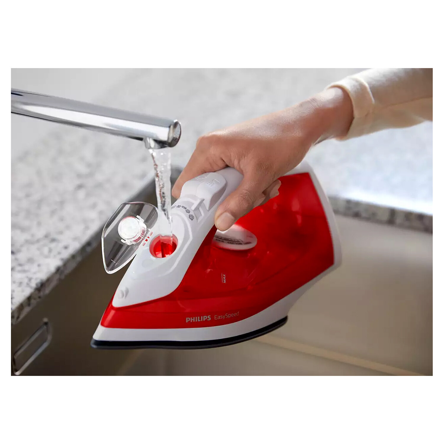 Утюг PHILIPS имеет большую подошву для более быстрого глажения и широкое отверстие для удобного наполнения водой.