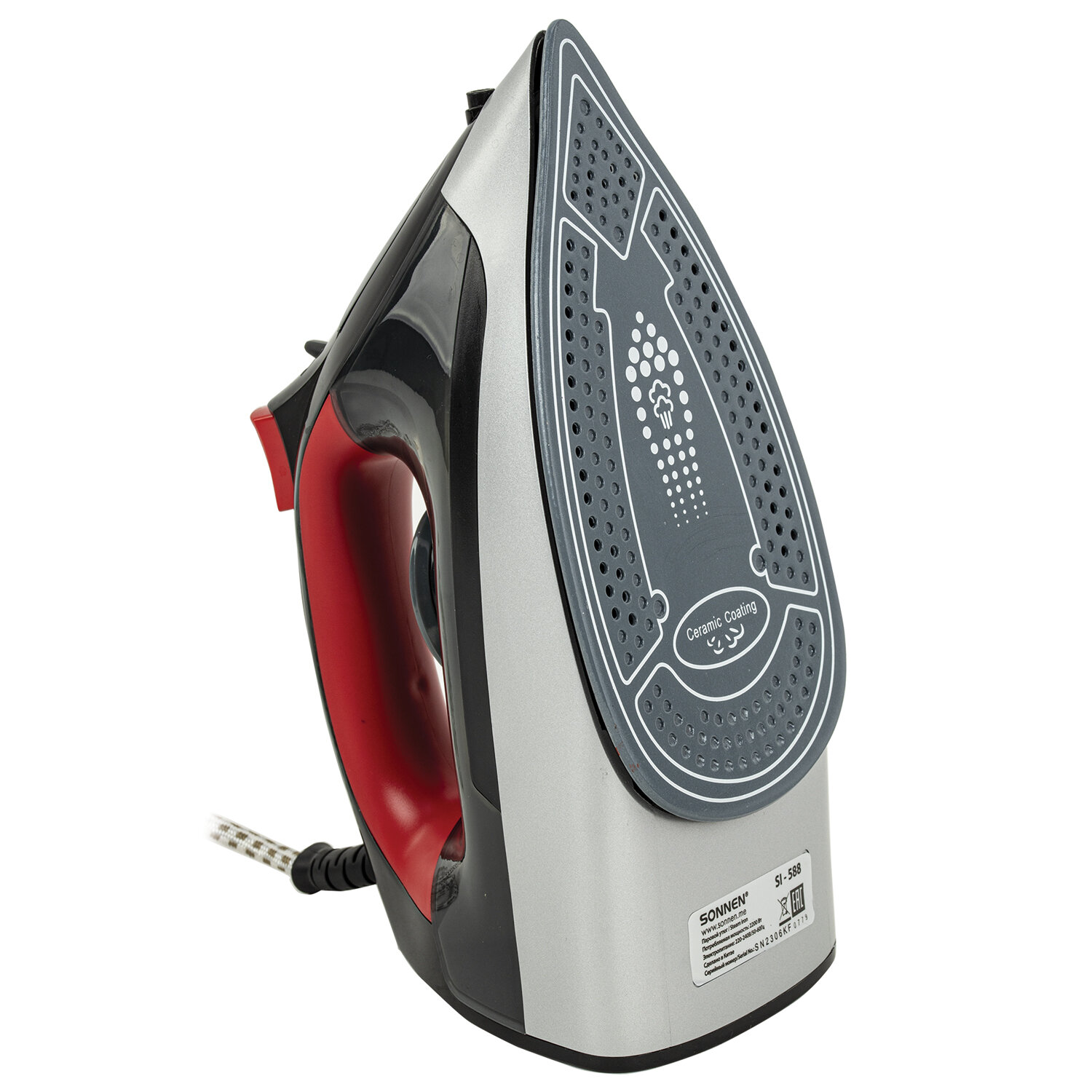 - Утюг SONNEN SI-588, 2200 Вт, керамическое покрытие, паровой удар, черный/красный, 455279