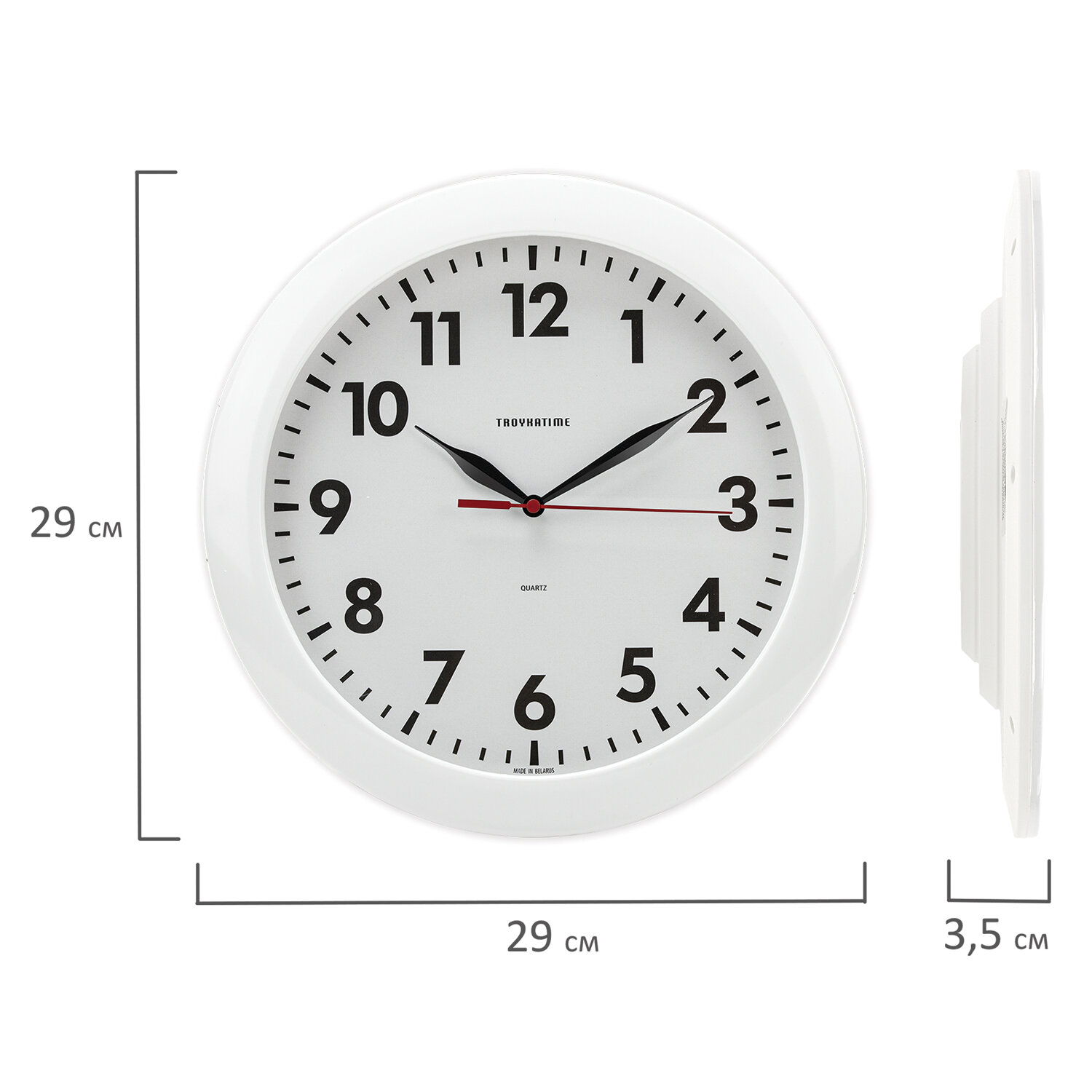 - Часы настенные TROYKATIME (TROYKA) 11110118, круг, белые, белая рамка, 29х29х3,5 см