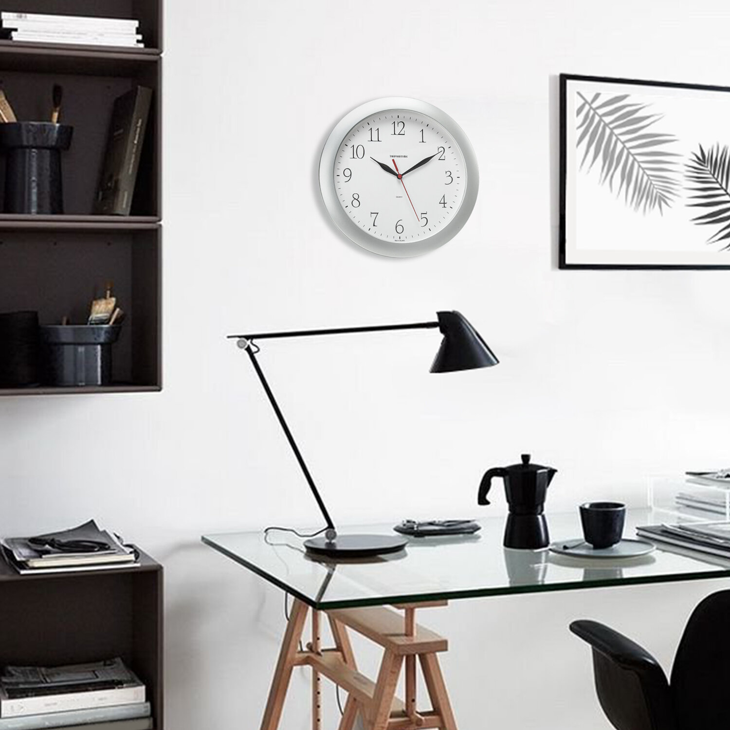 Часы настенные TROYKATIME (TROYKA) 11170113, круг, белые, серебристая рамка, 29х29х3,5 см