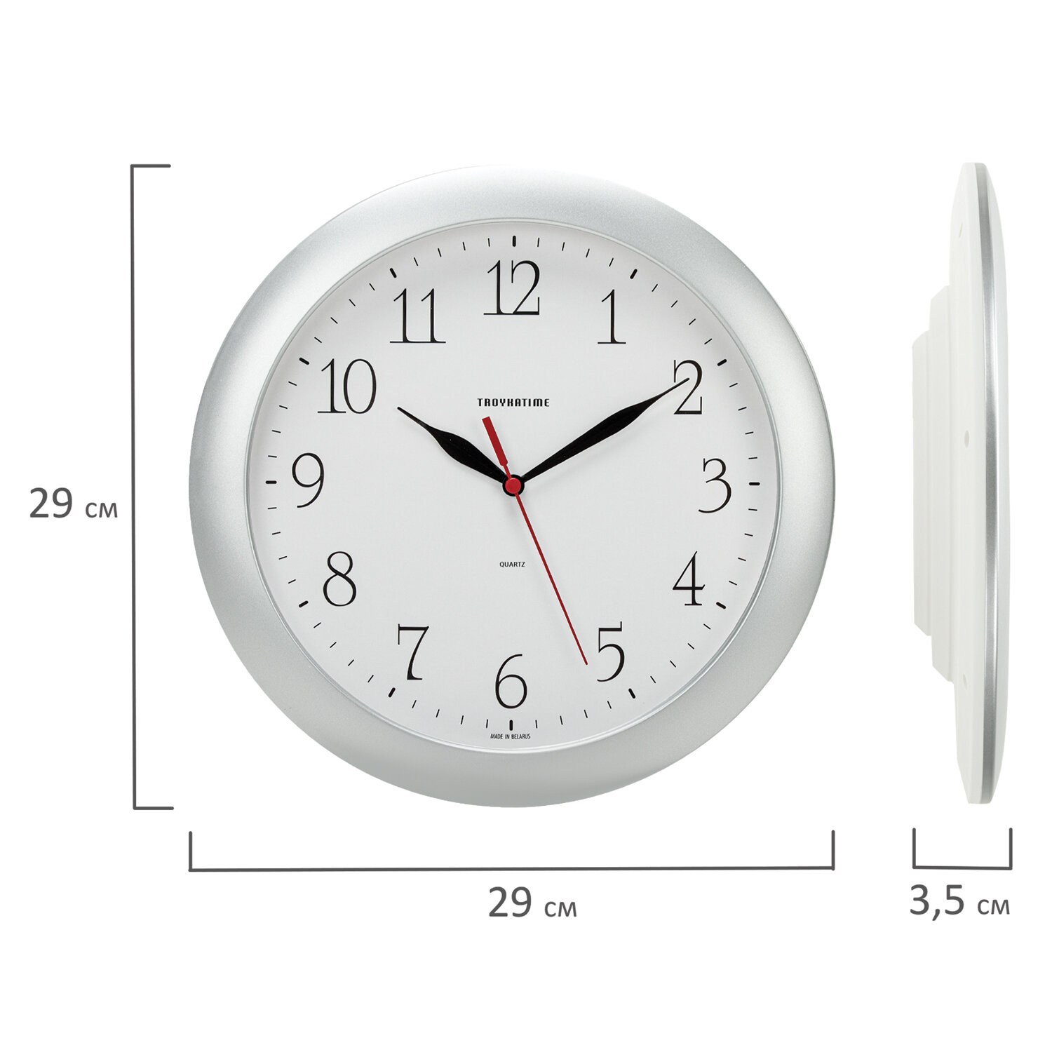 - Часы настенные TROYKATIME (TROYKA) 11170113, круг, белые, серебристая рамка, 29х29х3,5 см