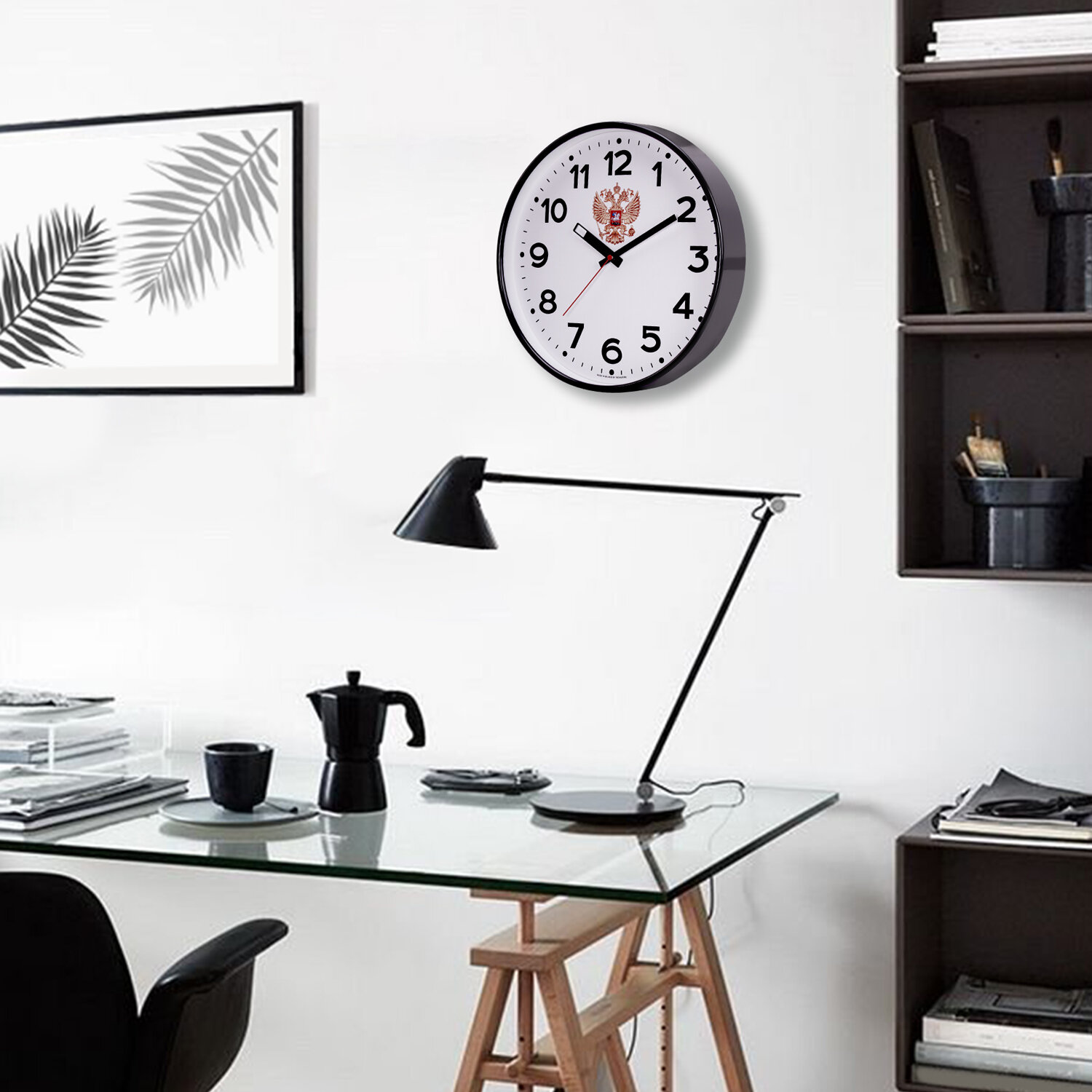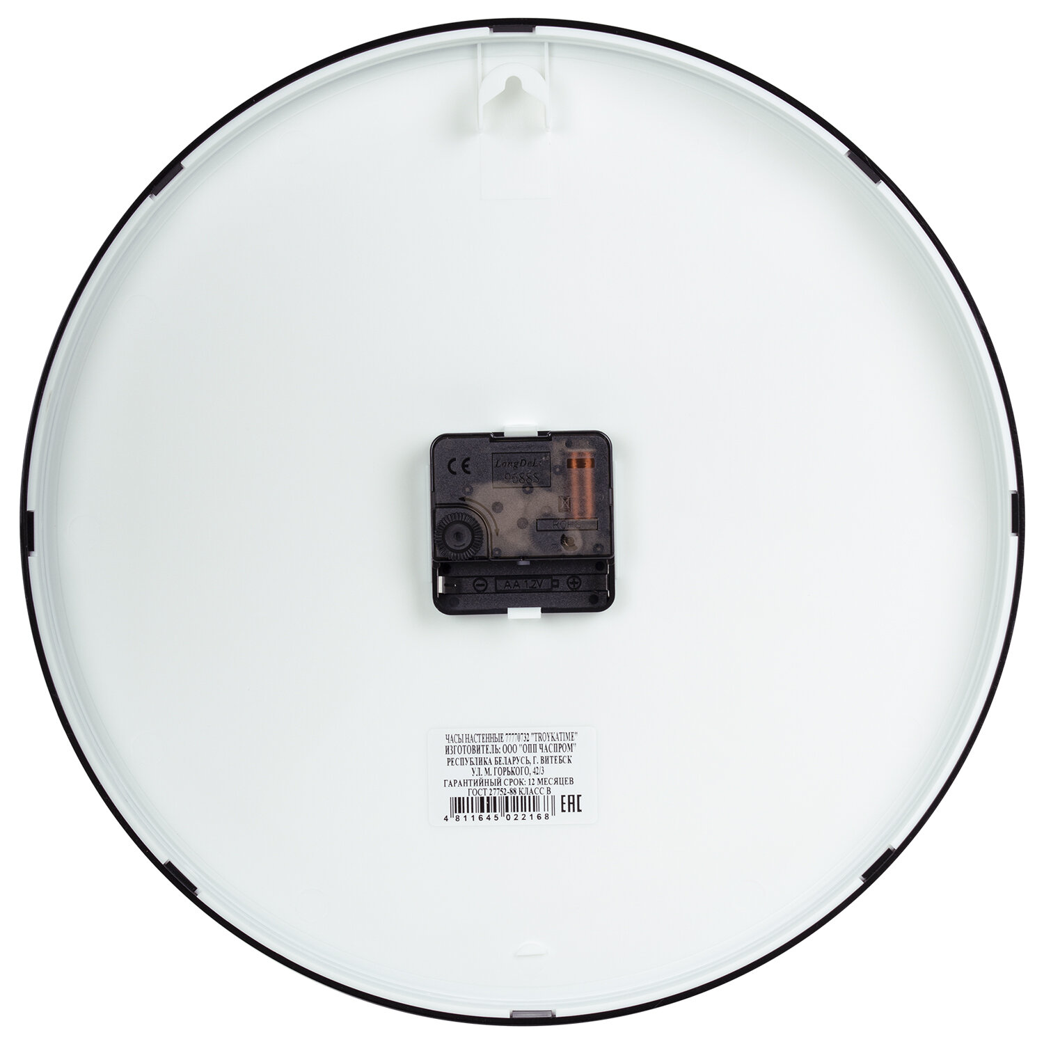 Часы настенные TROYKATIME (TROYKA) 77770732, круг, белые, черная рамка, 30,5х30,5х5 см