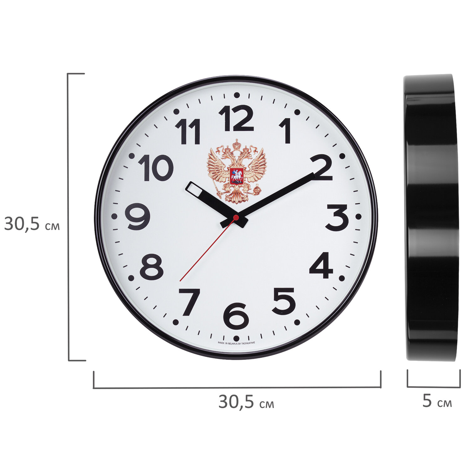 - Часы настенные TROYKATIME (TROYKA) 77770732, круг, белые, черная рамка, 30,5х30,5х5 см