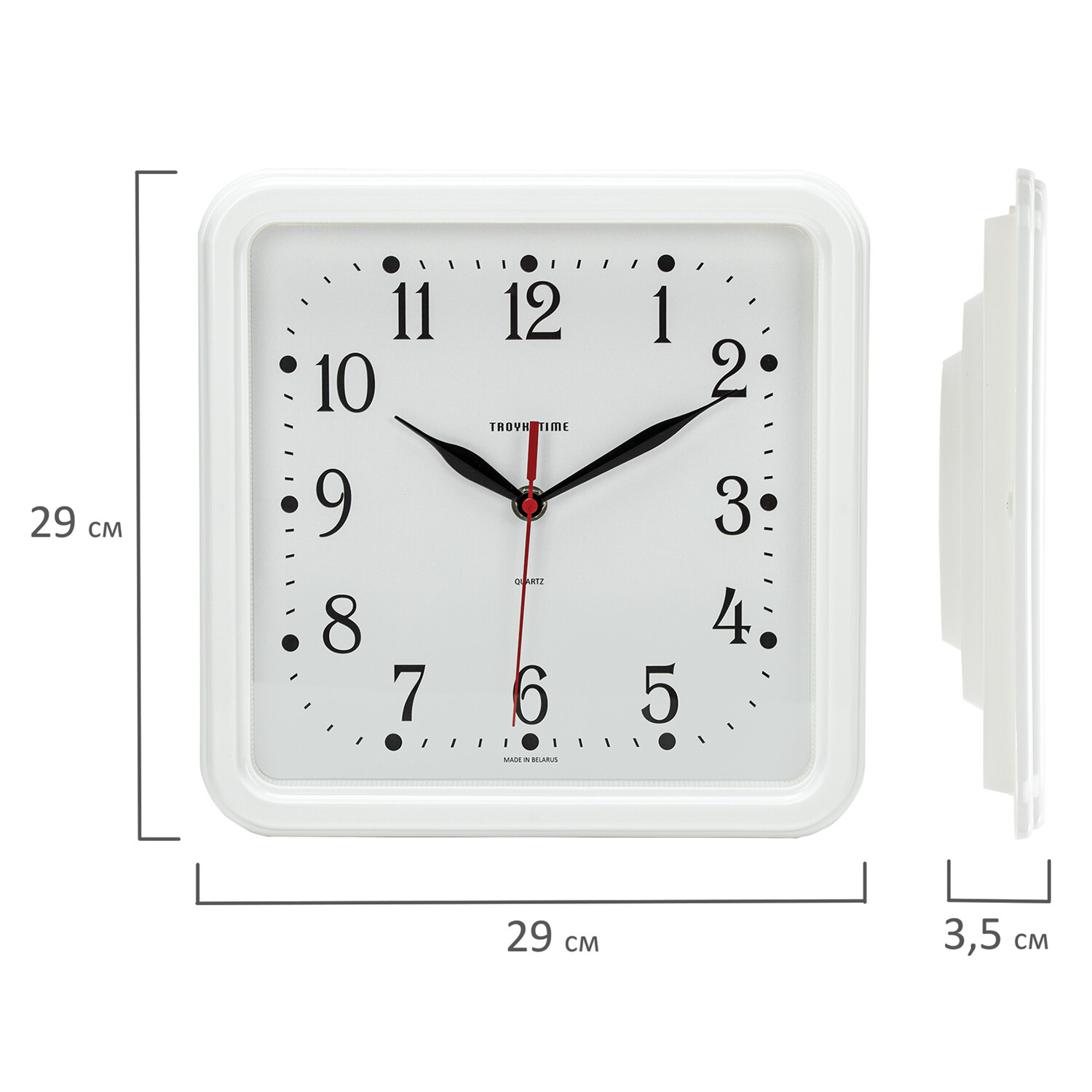 Часы работают от одной батарейки АА, которая не входит в комплект. Часы настенные TROYKATIME (TROYKA) 81810835, квадрат, белые, белая рамка, 26х26х3,5 см