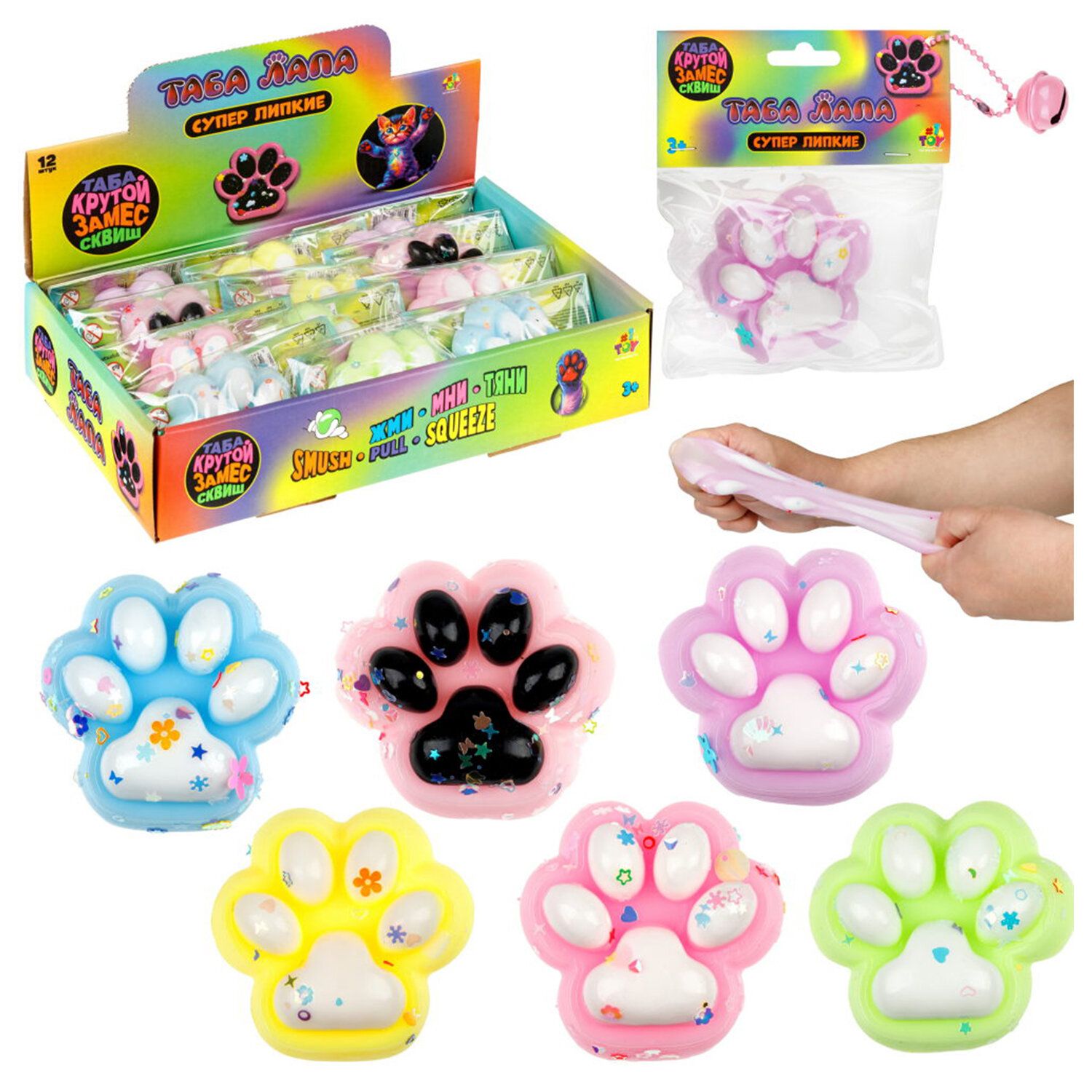 - Игрушка-антистресс КРУТОЙ ЗАМЕС "Таба лапа с посыпкой", 5,5х1,5 см, ассорти, 1TOY, Т20327