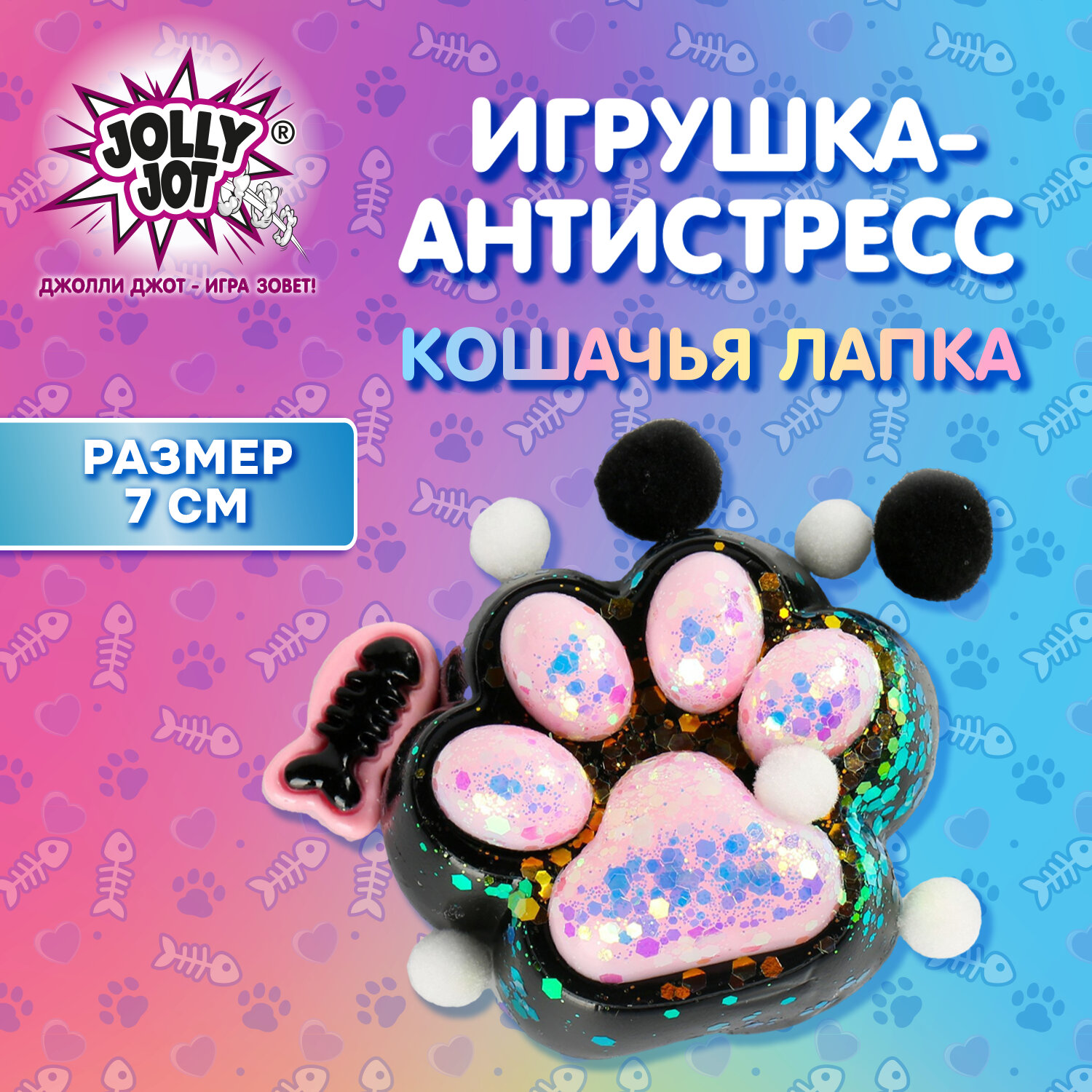 - Игрушка-антистресс "КОШАЧЬЯ ЛАПКА С РЫБКОЙ", 7х6 см, черно-розовая, дисплей, JOLLY JOT (ДЖОЛЛИ ДЖОТ), 665773