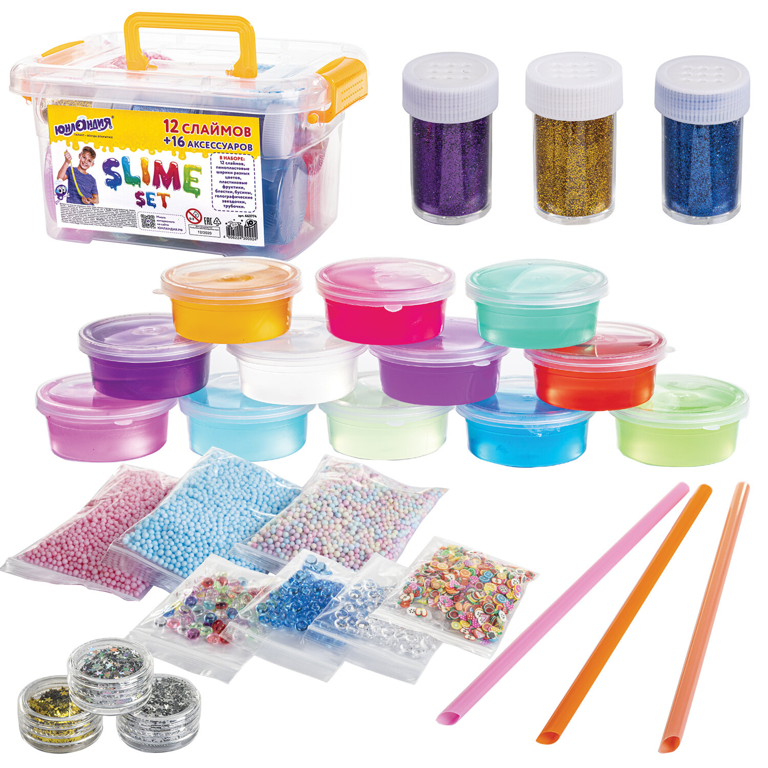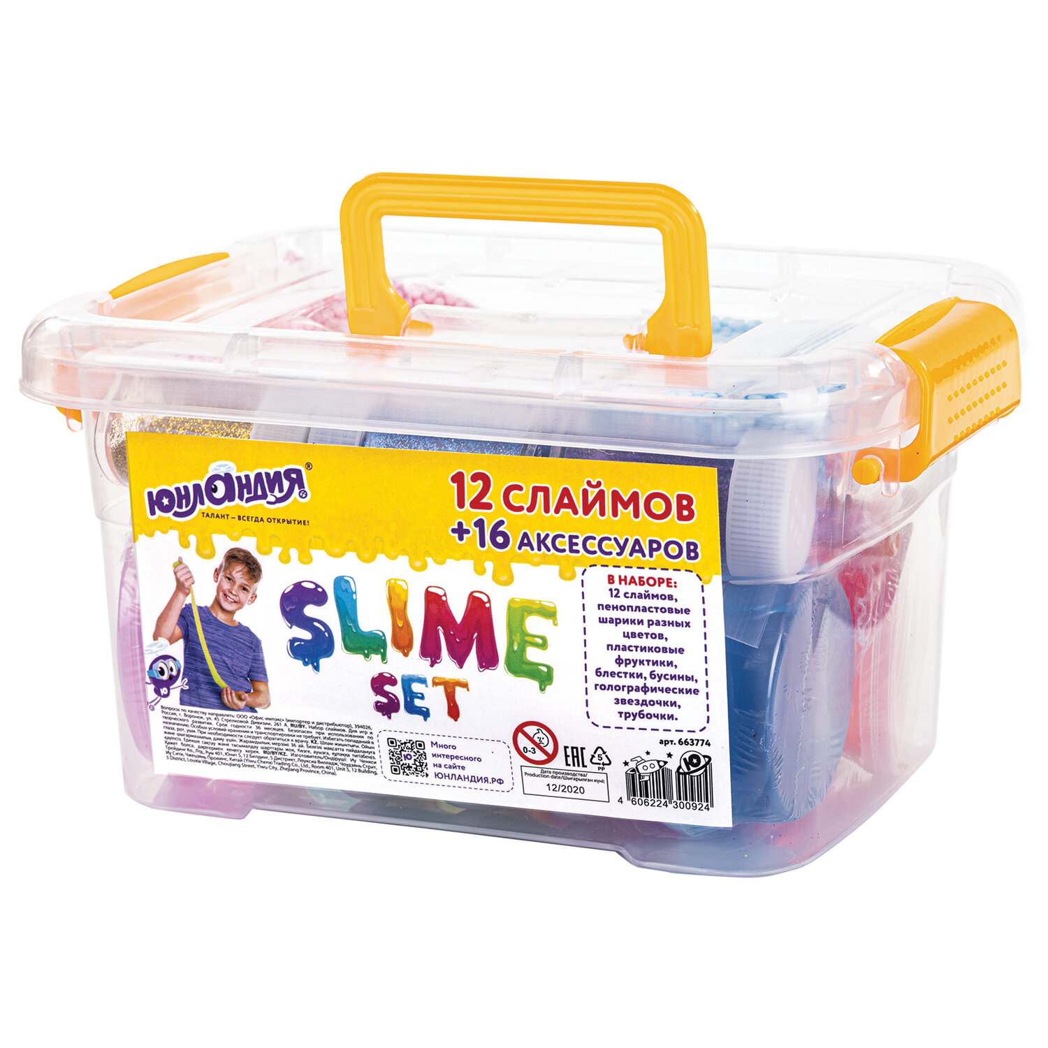 Набор слаймов 12 цветов, 16 аксессуаров, в пластиковом боксе, ЮНЛАНДИЯ, 663774