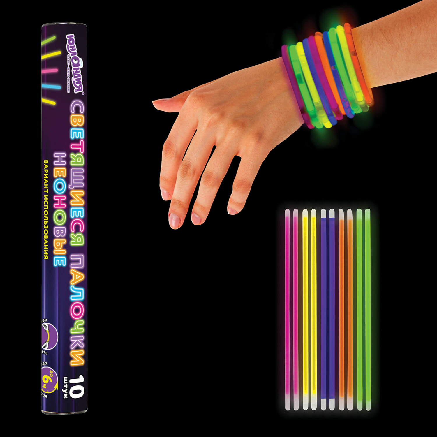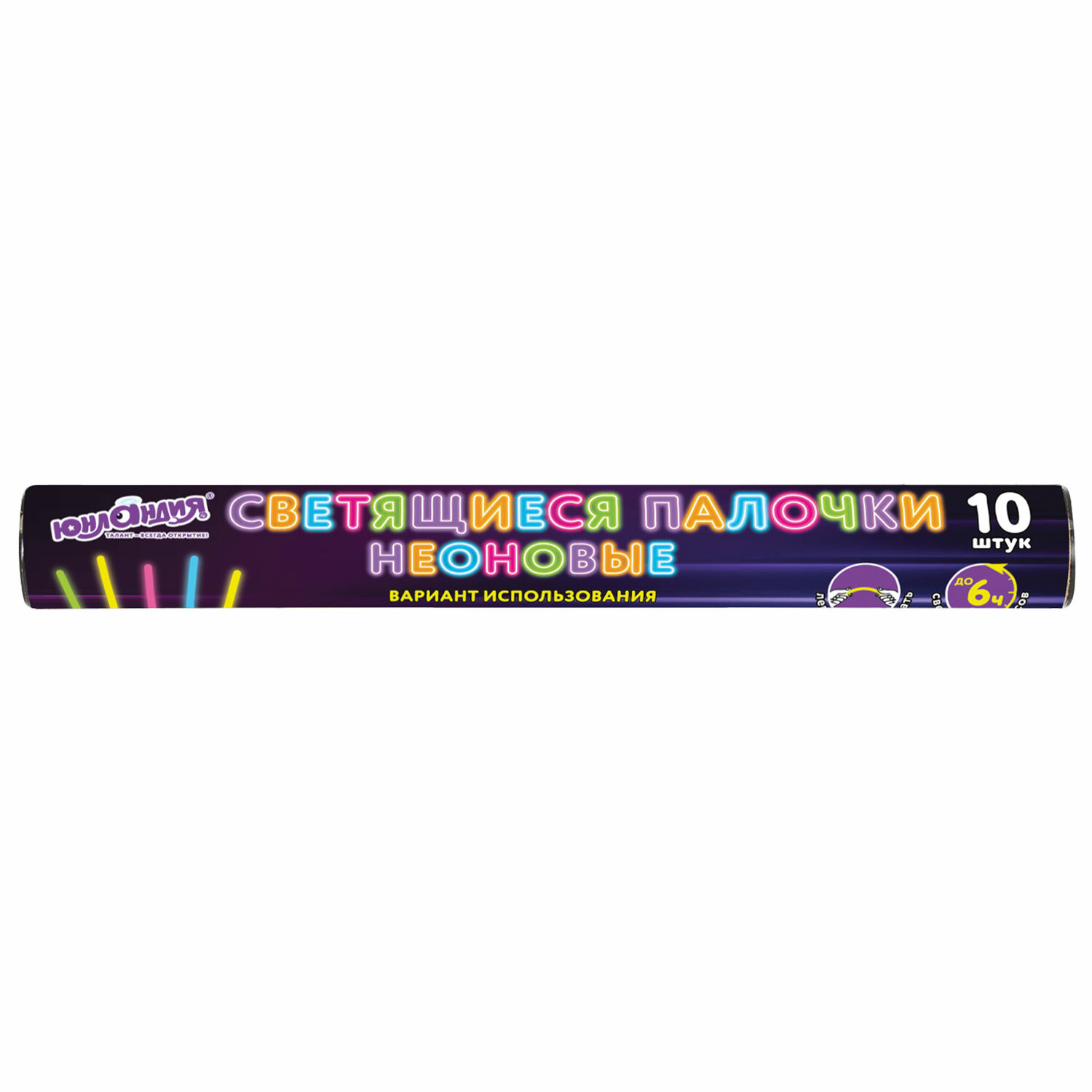 - Светящиеся (неоновые) палочки 10 штук в тубе, ассорти, ЮНЛАНДИЯ, 662595