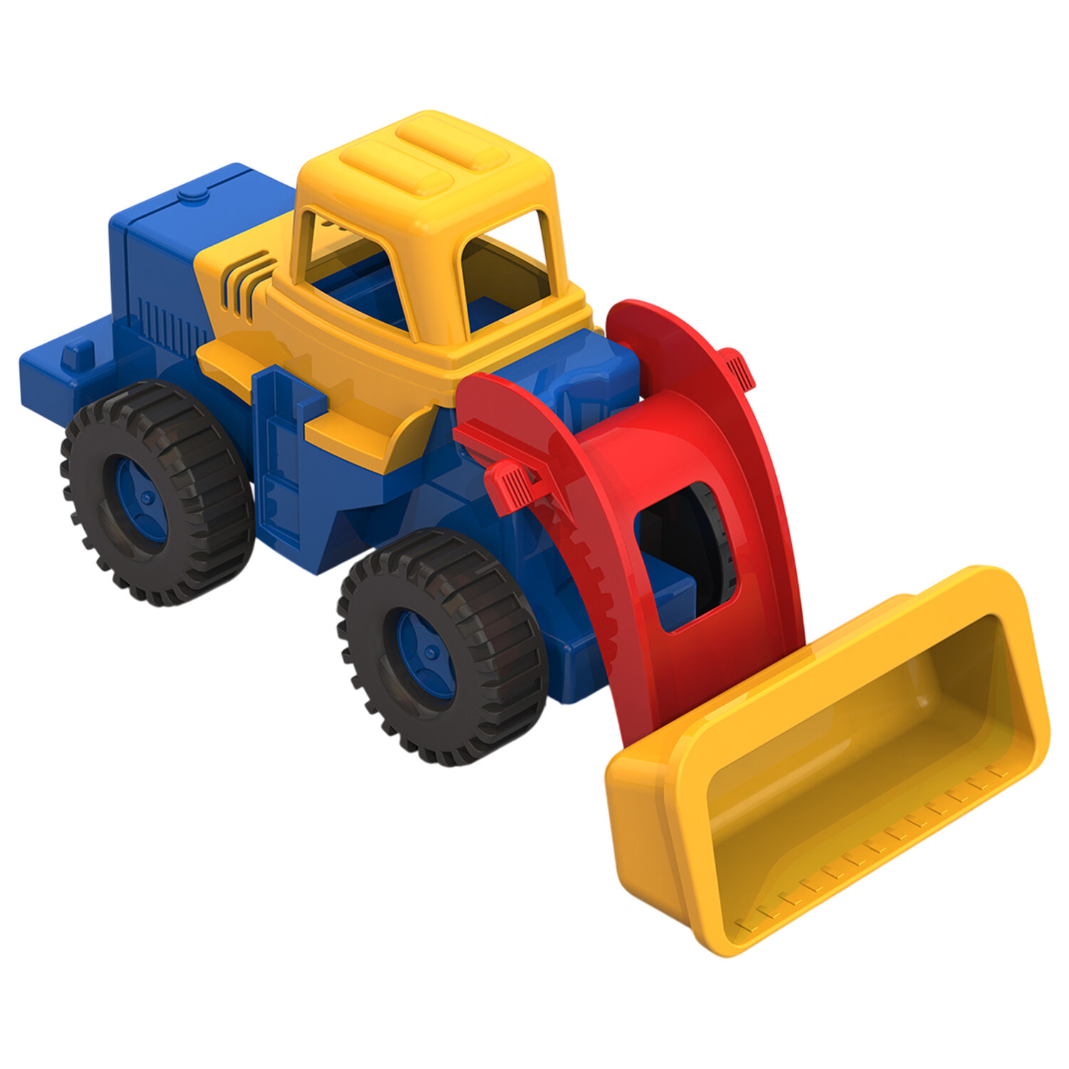 Трактор t;Медвежонокt; – это универсальная игрушка, которую можно использовать как в песочнице, так и дома. Он оснащён подвижным грейдером и большими крутящимися колёсами, которые обеспечивают трактору отличную проходимость в любых условиях. В кабину можно посадить небольшую фигурку водителя.