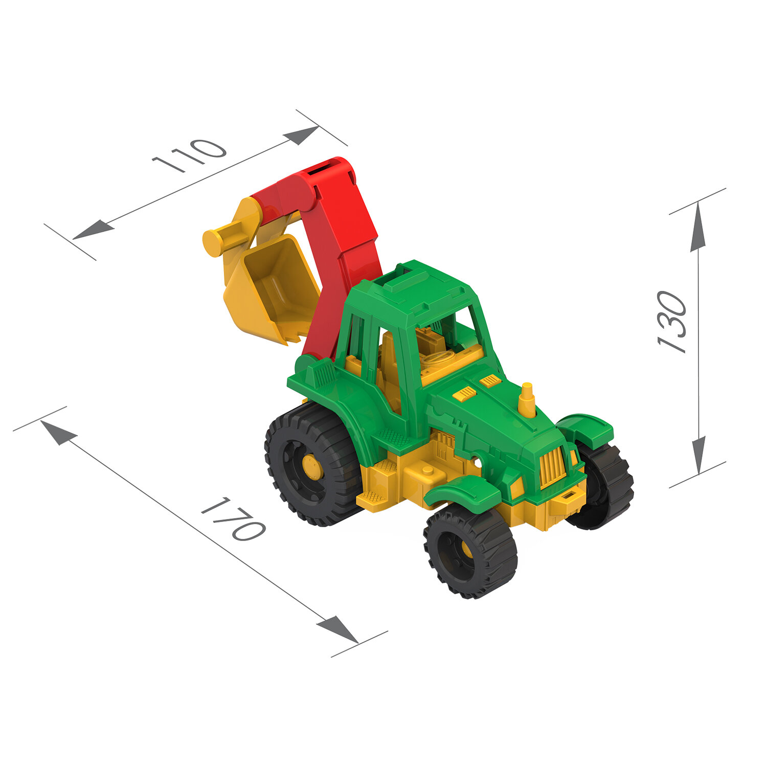 - Трактор игрушечный с ковшом "Ижора", пластиковый, 20,8x11,1x11 см, НОРДПЛАСТ, 150