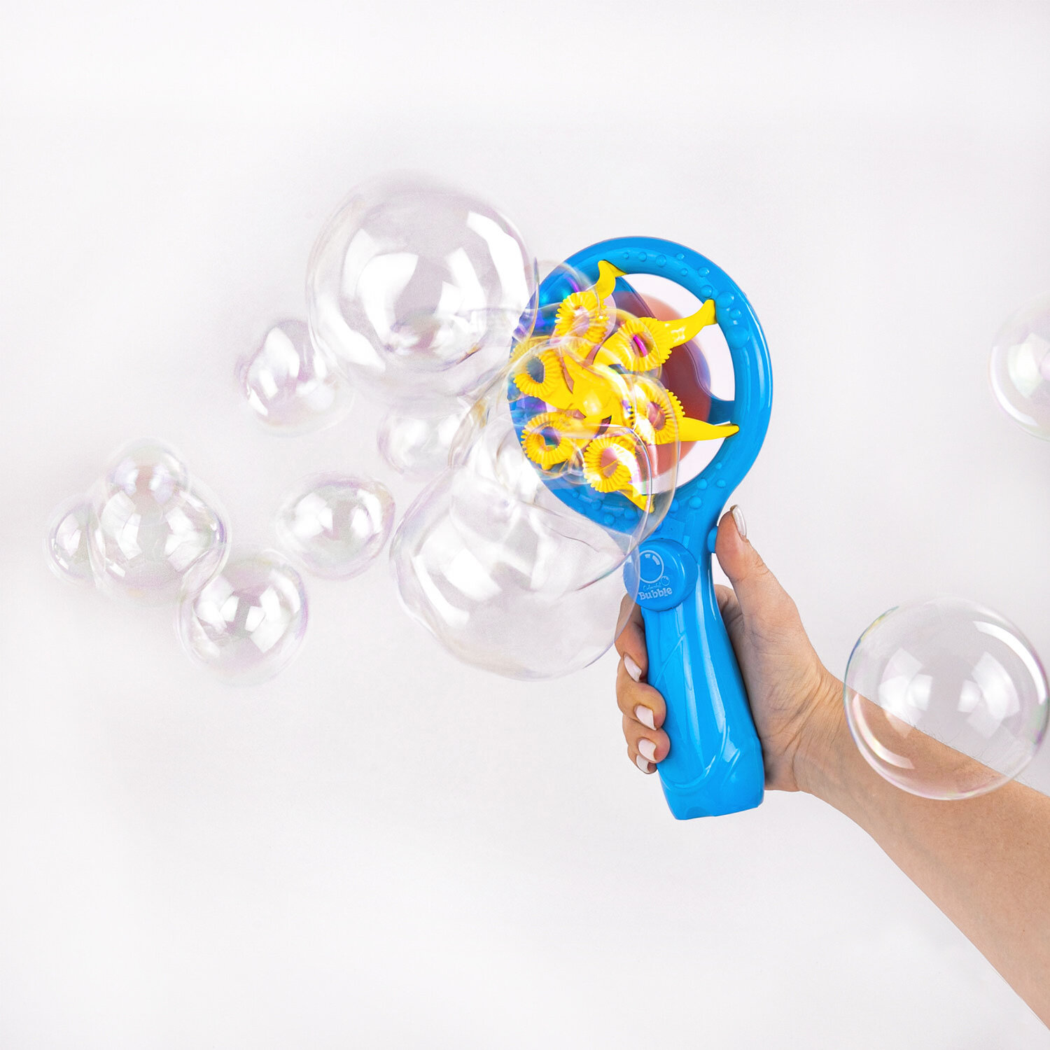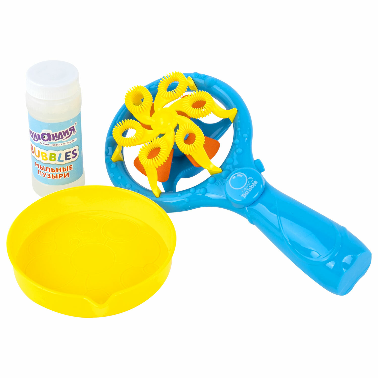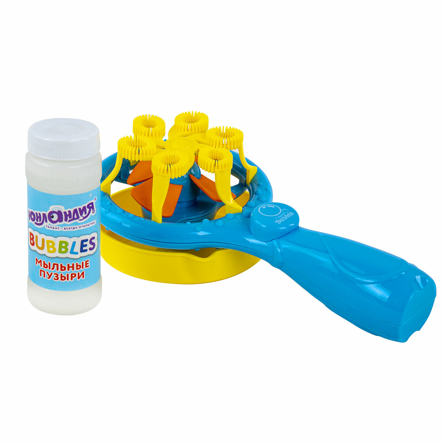 4. Нажмите на кнопку на вентиляторе для выдувания целого каскада разноцветных мыльных пузырей. Мыльные пузыри "Вентилятор автоматический", 100 мл, ЮНЛАНДИЯ, 664484