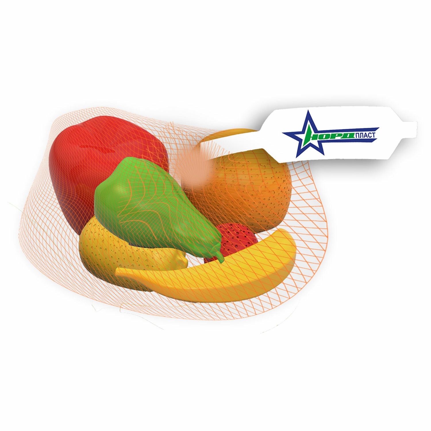 Упаковка – сетка. Набор игрушечный "Фрукты", пластиковый, 6 предметов, НОРДПЛАСТ, 433