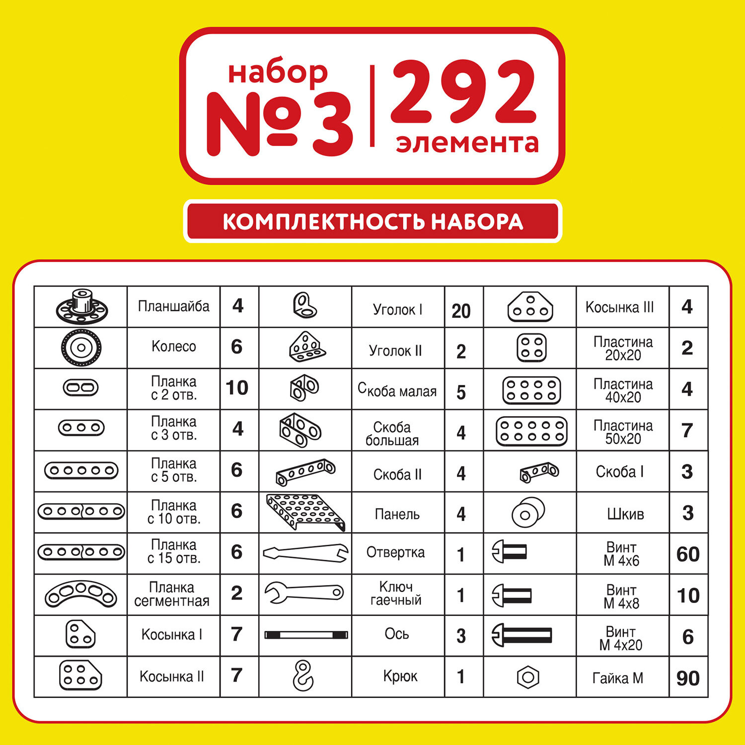 - Конструктор металлический ЮНЛАНДИЯ "Для уроков труда №3", развивающий, 292 элемента, 104681
