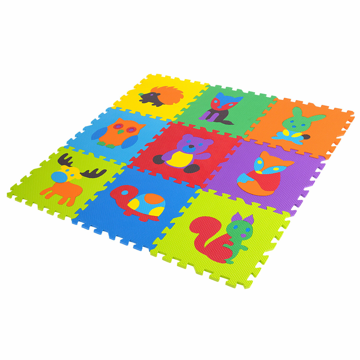 Внимание! Цвета деталей коврика могут отличаться от представленных на фото. Коврик-пазл напольный 0,9х0,9 м мягкий "Зверушки", 9 частей 30х30 см, толщина 1 см, ЮНЛАНДИЯ, 664666
