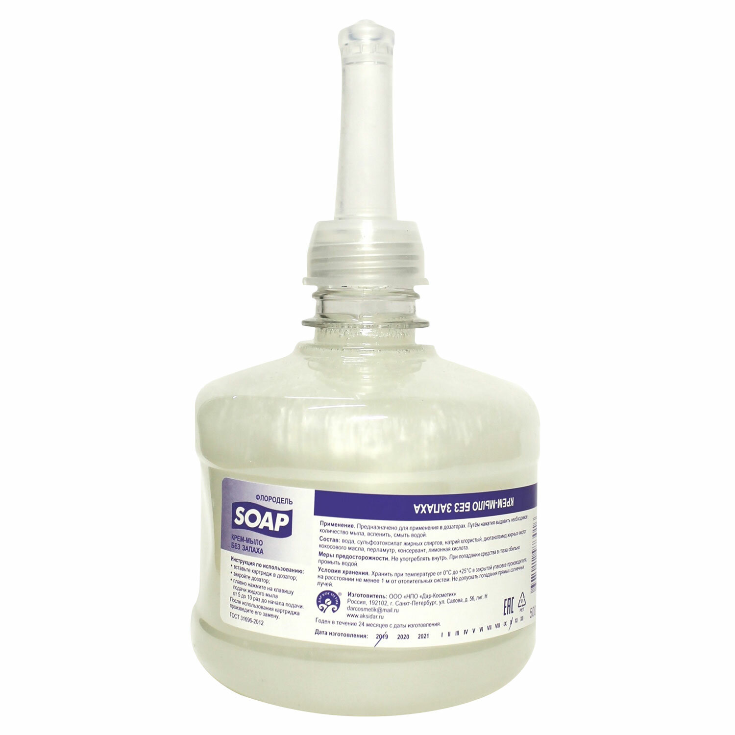 - Картридж с жидким крем-мылом одноразовый (Система S2) "Нейтральное", 500 мл, ФЛОРОДЕЛЬ, 3016