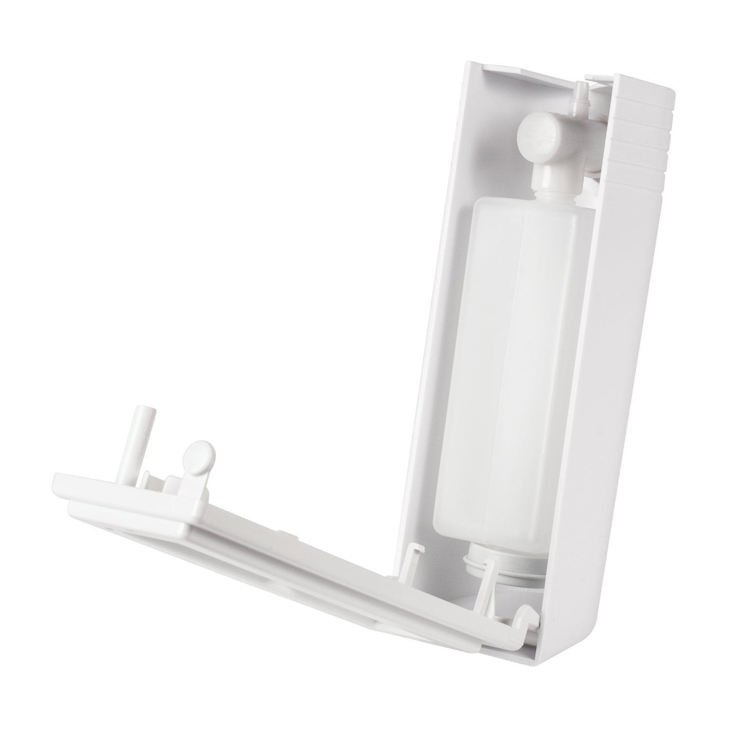 Корпус выполнен из ударопрочного пластика ABS. Выдача мыла осуществляется экономичными порциями. Дозатор сочетается с расходными материалами других производителей. Имеется окно для контроля уровня мыла. В комплект входят крепежные материалы.