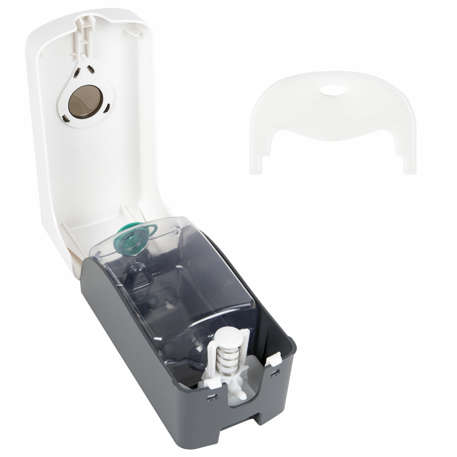 Антивандальный корпус выполнен из ударопрочного ABS-пластика. Объем – 1 л. Выдача мыла осуществляется экономичными порциями. Дозатор сочетается с расходными материалами других производителей. Имеется окно для контроля уровня мыла. В комплект входят крепежные материалы.