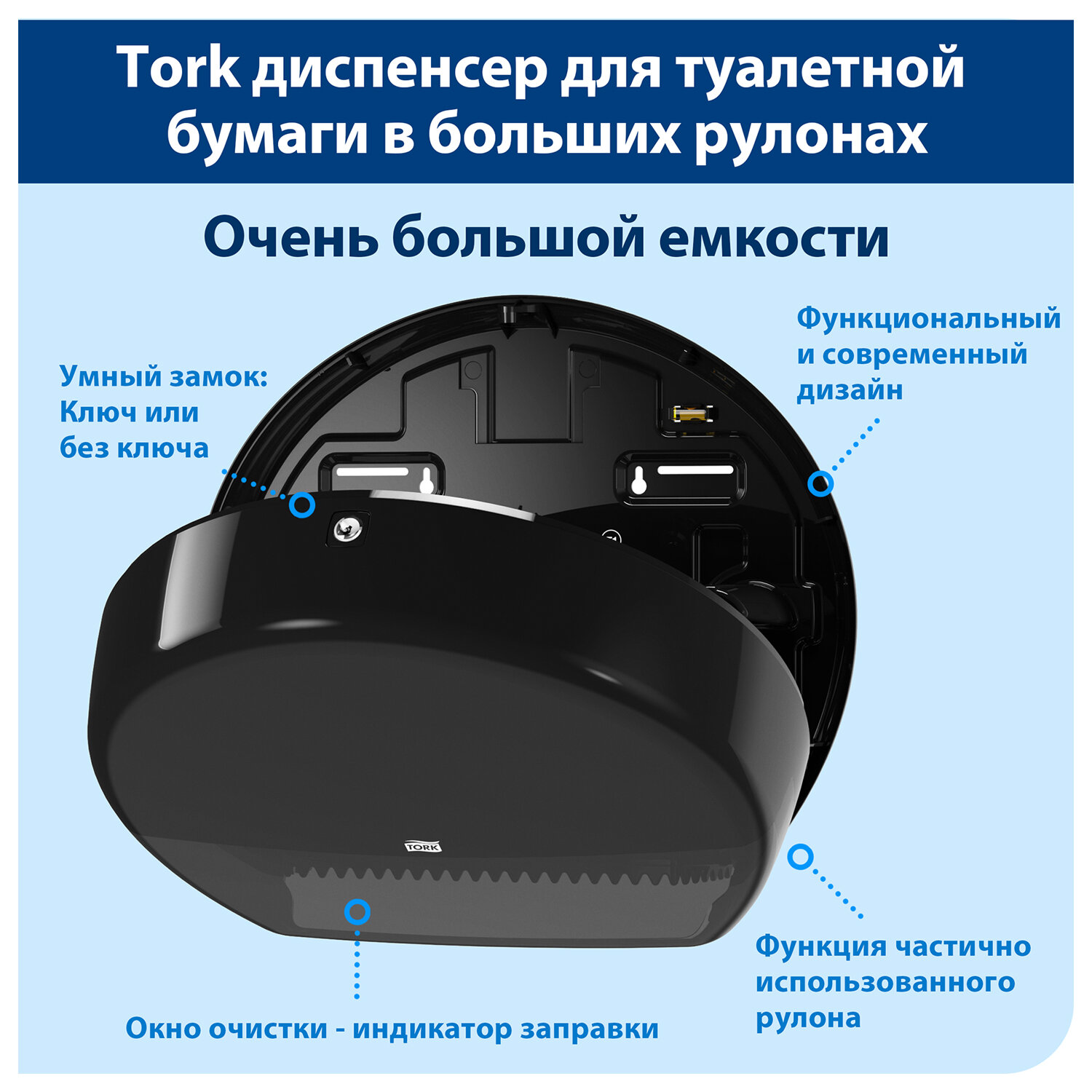- Диспенсер для туалетной бумаги TORK (Система T1) Elevation, черный, 554008
