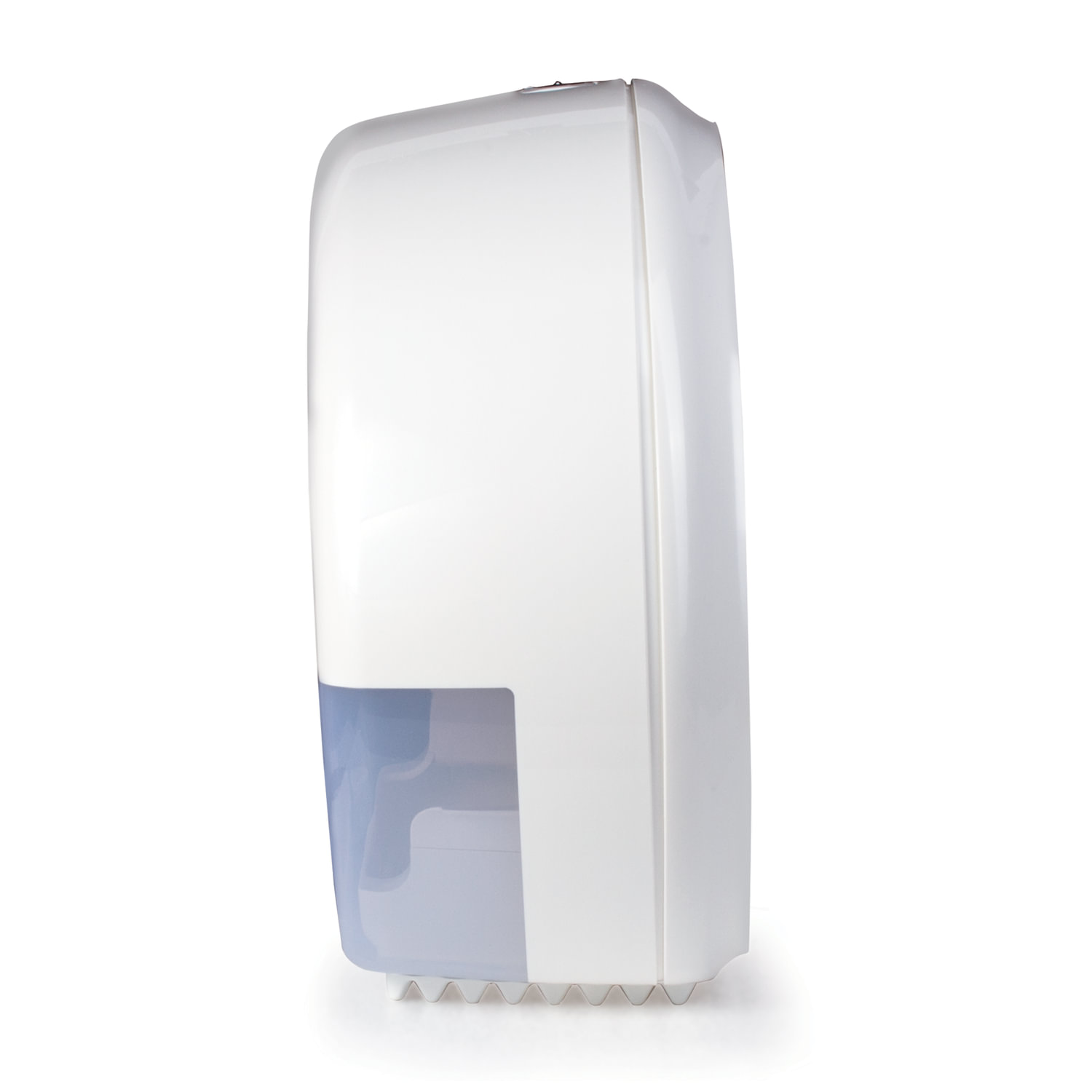 Идеальное решение для туалетных комнат с небольшой проходимостью посетителей. Оснащен устройством, предотвращающим самопроизвольное разматывание рулона и дополнительной втулкой для частично использованного рулона. Диспенсер для туалетной бумаги TORK (Система T2) Elevation, mini, белый, 555000