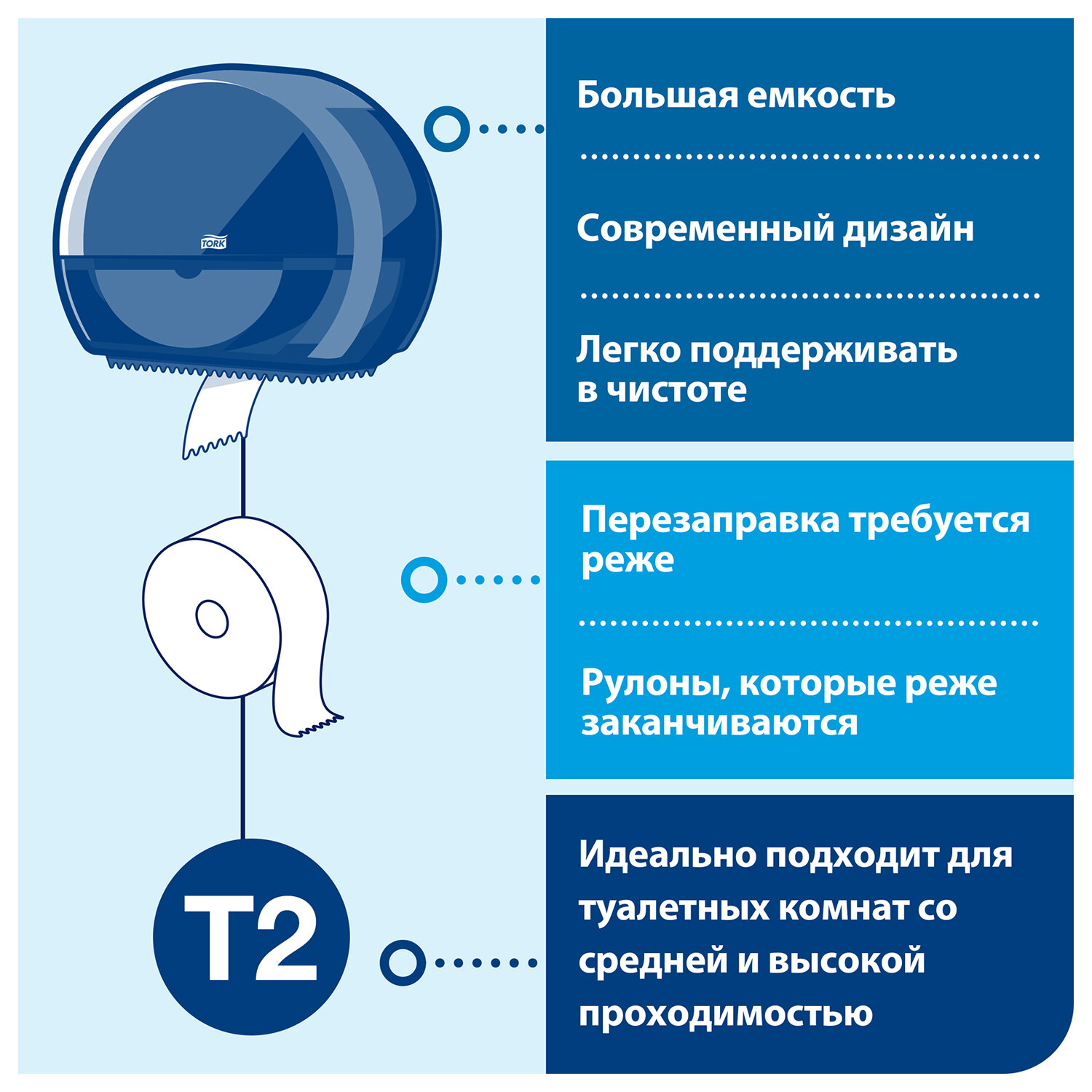 - Диспенсер для туалетной бумаги TORK (Система T2) Elevation, mini, черный, 555008