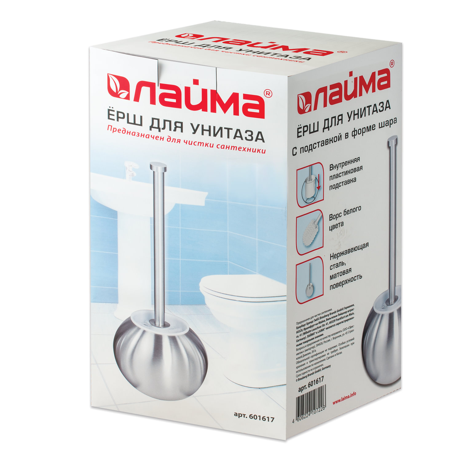 - Ерш для унитаза LAIMA, с подставкой в форме шара, нержавеющая сталь, матовый, 601617