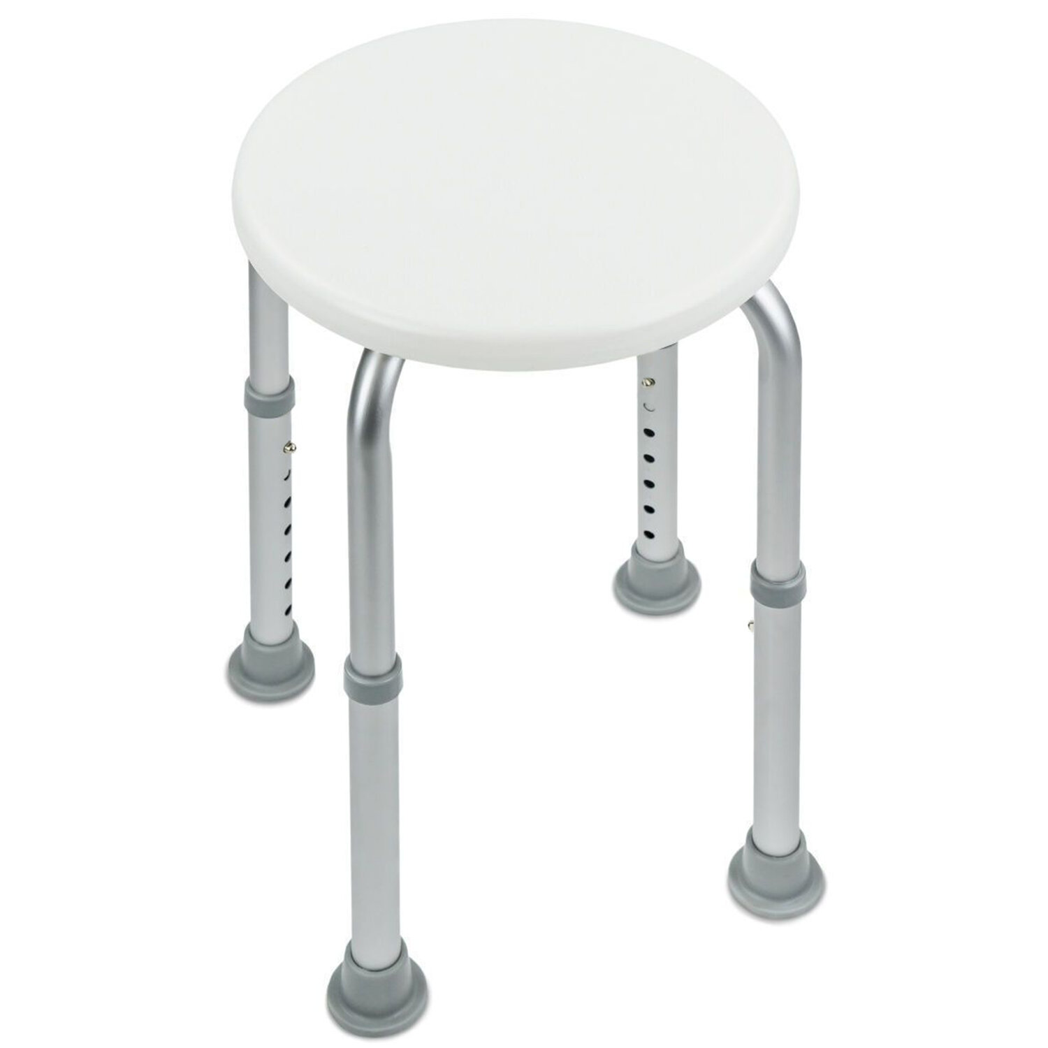 Круглое сиденье диаметром 32 см из прочного ABS пластика. Телескопические ножки изготовлены из анодированного алюминия, не подверженного коррозии. Оснащены насадками из термопластичной резины, препятствующей скольжению и обеспечивающей устойчивость.