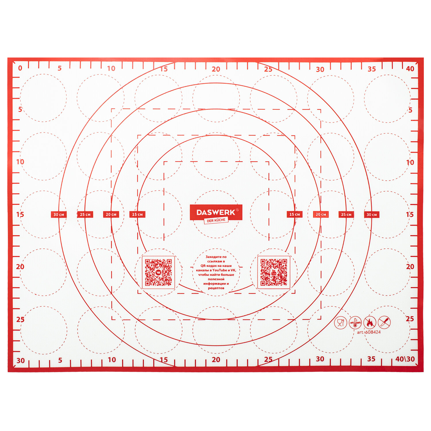 Обращаем внимание: при работе с ковриком используйте только пластиковый нож для теста или пластиковый кулинарный шпатель. Коврик силиконовый для раскатки/запекания 30х40 см, красный, DASWERK, 608424