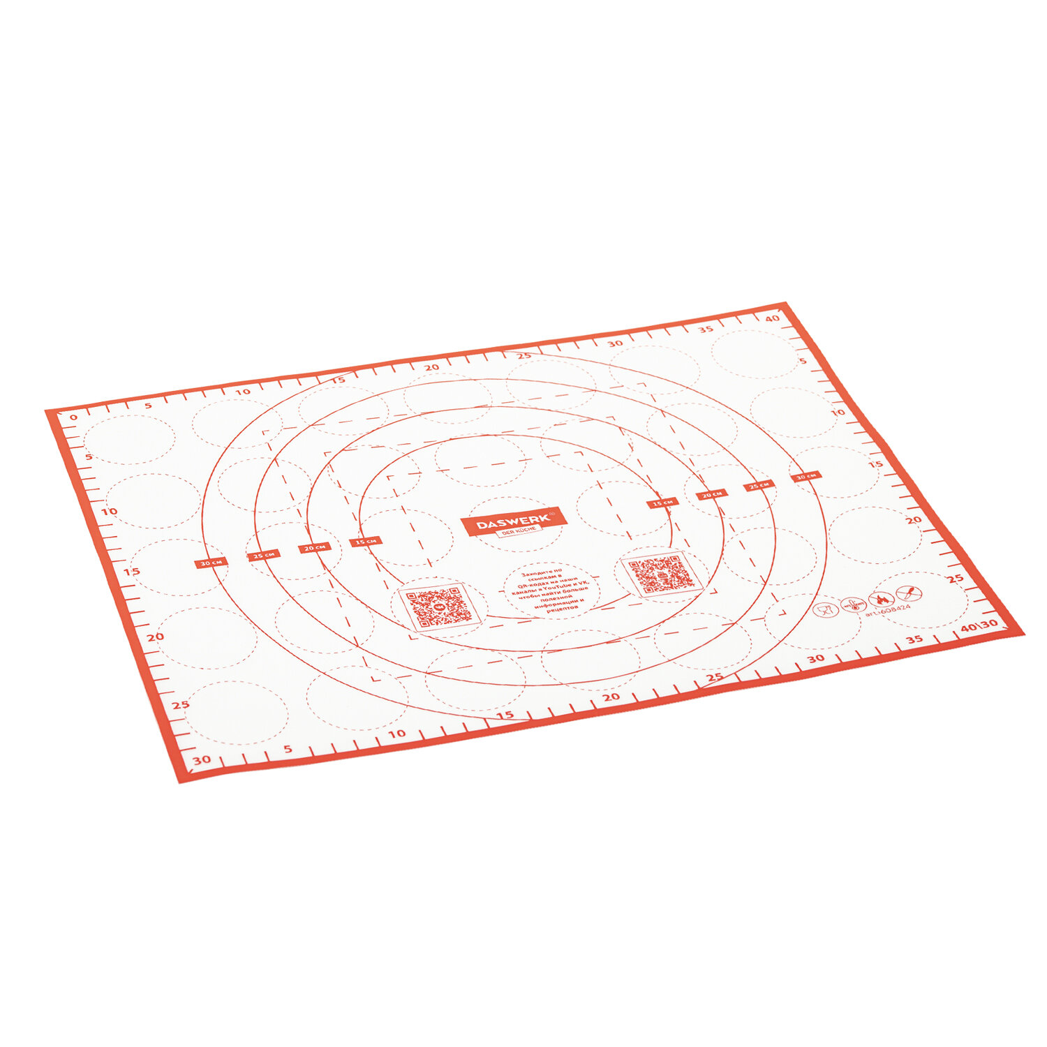 Коврик силиконовый для раскатки/запекания 30х40 см, красный, DASWERK, 608424