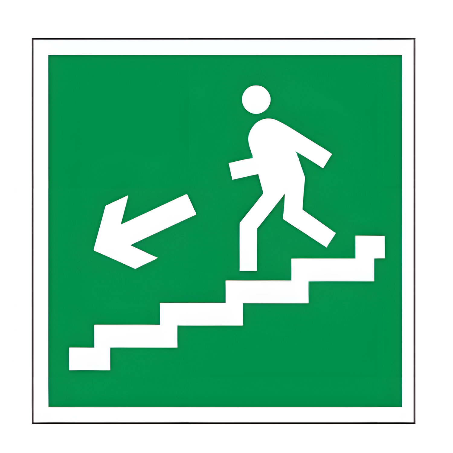 Знак эвакуационный "Направление к эвакуационному. выходу по лестнице налево вниз" изготовлен в соответствии ГОСТ, отраслевыми нормами, правилами и инструкциями. Знак эвакуационный "Направление к эвакуационному выходу по лестнице НАЛЕВО вниз", 200х200 мм, пленка самоклеящаяся, 610019/Е14