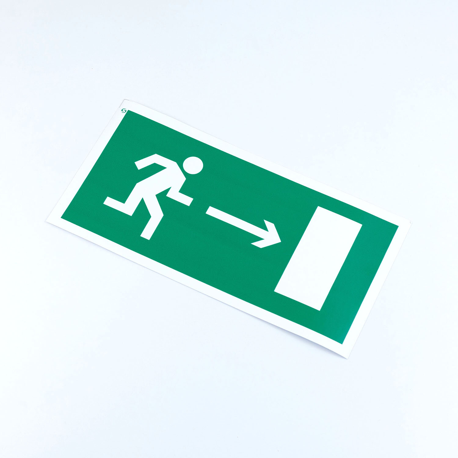 Самоклеящаяся наклейка t;'Направление к эвакуационному выходу направоt; используется на стенах помещений для указания направления движения к эвакуационному выходу по наклонной плоскости (используется совместно с другими знаками пожарной безопасности). Знак "Направление к эвакуационному выходу направо", КОМПЛЕКТ 3 штук, 150х300х2 мм, фотолюминесцентный, пластик, E03, Е03