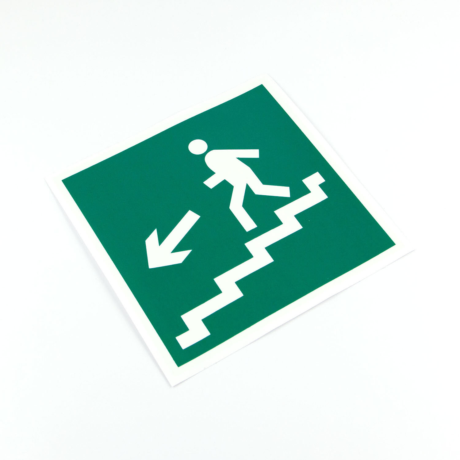 Эвакуационный знак t;Направление к эвакуационному выходу по лестнице вниз, налевоt; применяется в качестве пиктограммы (наклейки) для световых эвакуационных указателей. Знак предназначен для размещения на лестничных площадках, а также стенах, прилегающих к лестничному маршу. Эвакуационный знак изготовлен на белой самоклеящейся пленке.