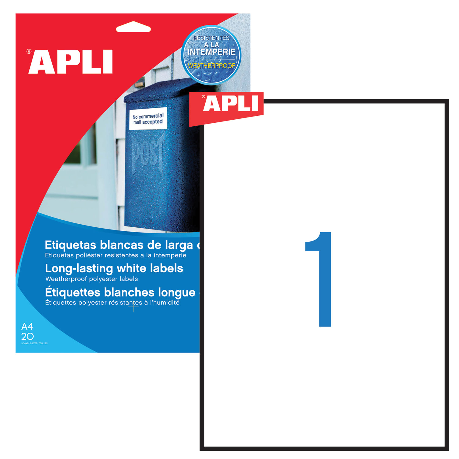 Погодоустойчивые белые этикетки из полиэстера для черно-белой и цветной печати на лазерных принтерах. Имеют усиленный клей. Идеальный вариант для использования вне помещений. Обладают водостойкими, грязеотталкивающими и маслостойкими свойствами. Этикетка самоклеящаяся ВСЕПОГОДНАЯ, 210х297 мм, 1 этикетка, полиэстер, белая, 20 листов, APLI, 01228