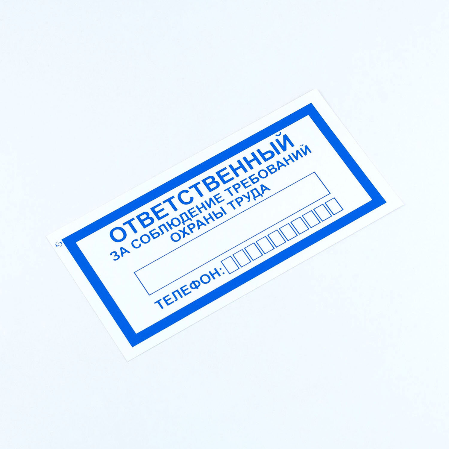 - Знак "Ответственный за соблюдение требований охраны труда", КОМПЛЕКТ 10 штук, 100х200 мм, пленка, V57