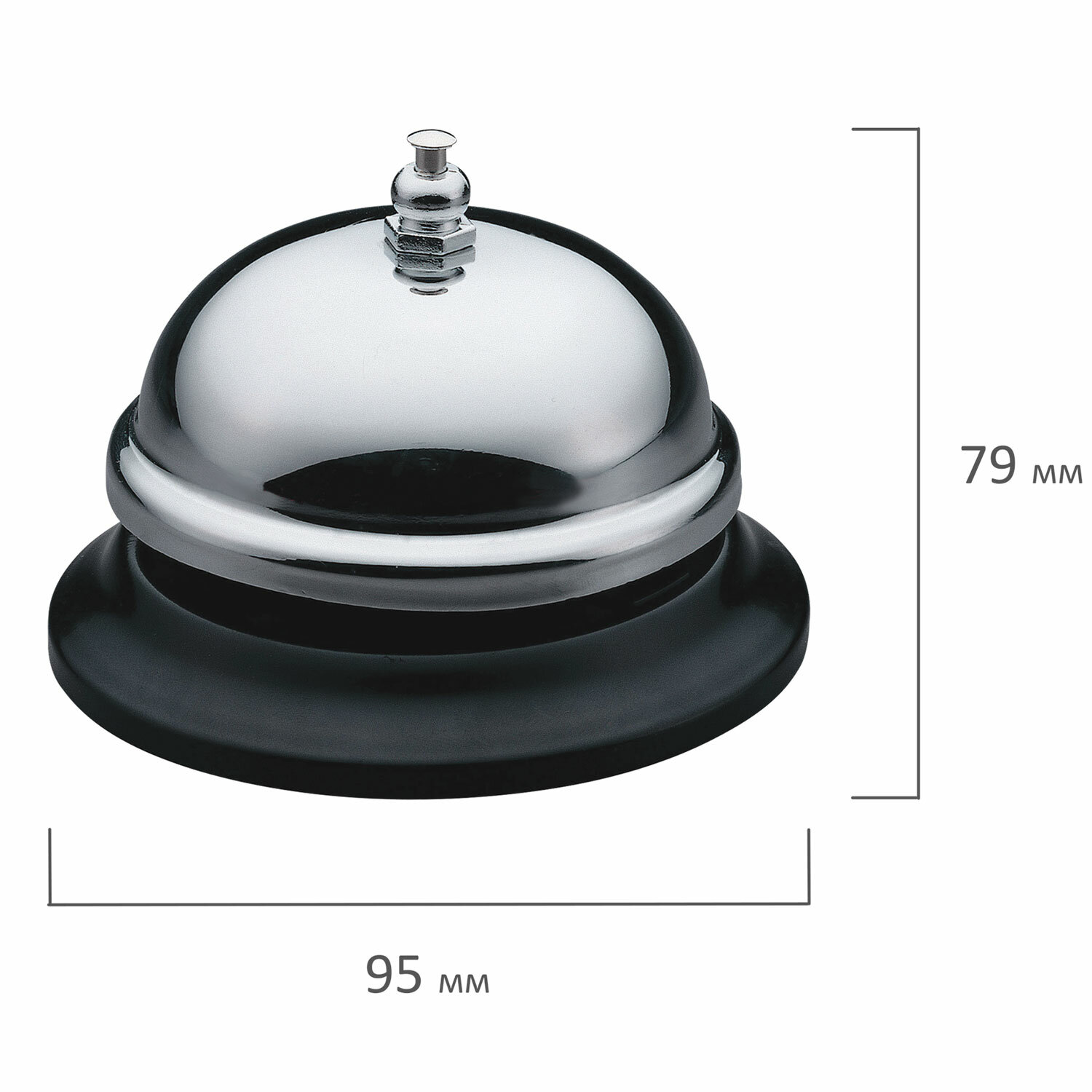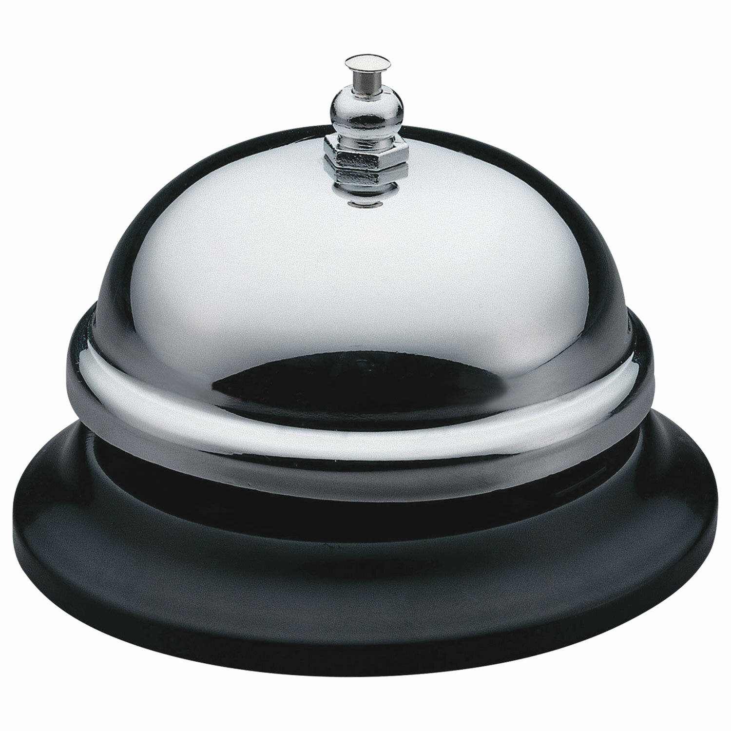 Компактный хромированный звонок на пластиковом основании. Для привлечения внимания персонала в офисах, гостиницах на стойках ресепшн. Звонок настольный KW-trio для ресепшн, хромированный, -3A00
