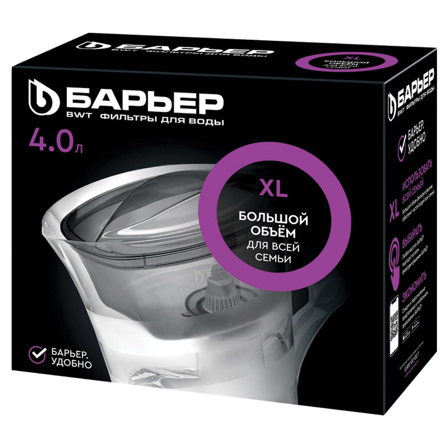 Кувшин-фильтр для воды БАРЬЕР t;Твистt; — это стильное и практичное решение для чистой питьевой воды в вашем доме. С объемом 4 литра он идеально подходит для семьи, обеспечивая до 1,6 литров очищенной воды за один раз. Эксклюзивный дизайн с горизонтальными матовыми полосами и удобная цельнолитая ручка делают кувшин не только красивым, но и эргономичным в использовании.