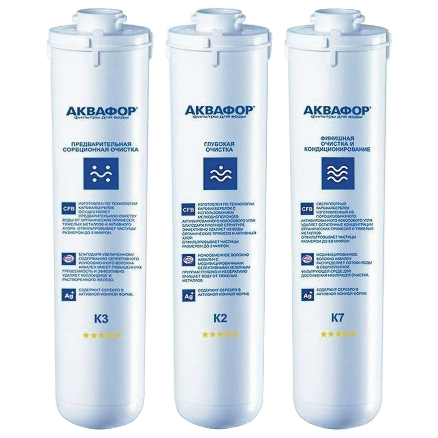 - Картриджи сменные АКВАФОР "Кристалл К3-К2-К7" для холодной воды, 3 ступени, ресурс 8000 л, КОМПЛЕКТ 3 шт., 518543