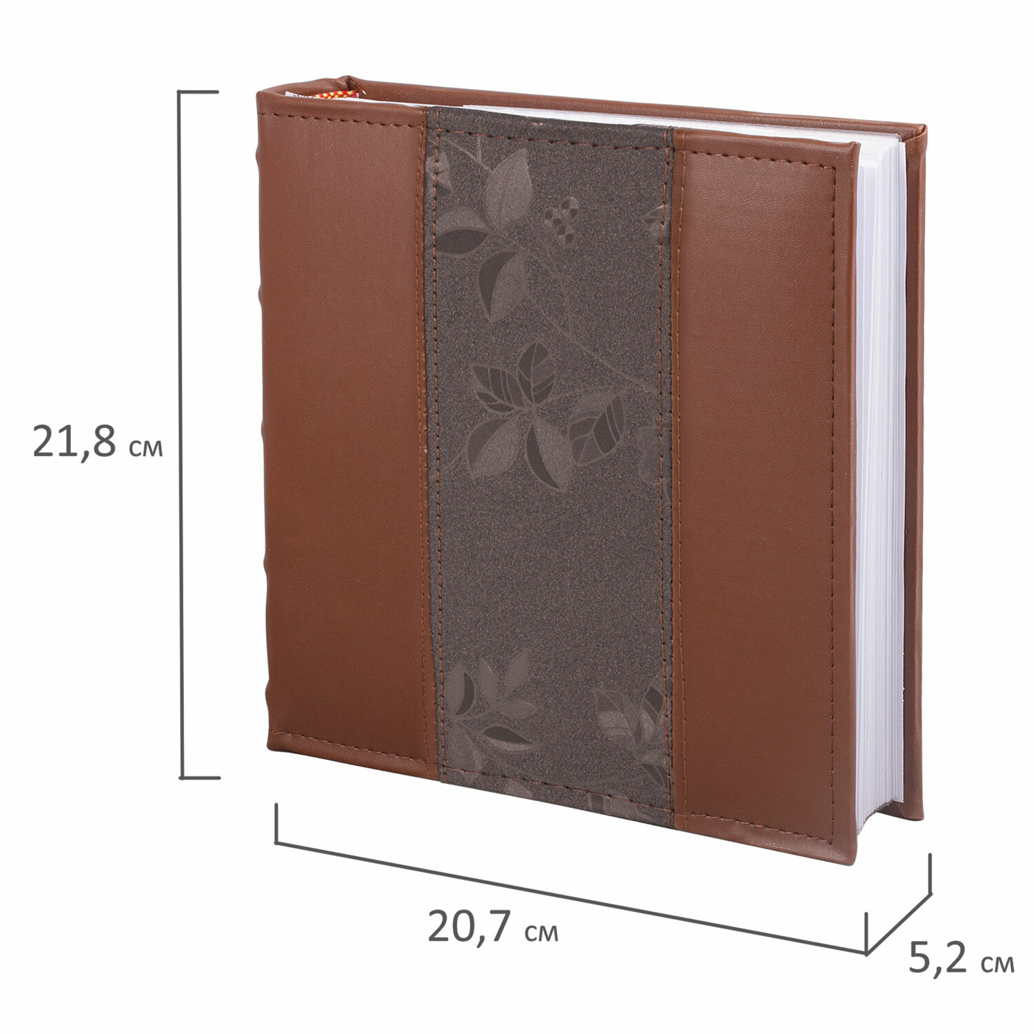 Состоит из 50 бумажных листов размером 15,5х21 см с карманами и вмещает 200 фотографий размером 10х15 см по 2 штуки на странице. Обложка фотоальбома скомбинирована из материала под кожу классик и вставки с рельефным рисунком. Фотоальбом с книжным переплетом отличается повышенной прочностью и долгим сроком службы. Размер - 20,7х21,8 см. Фотоальбом BRAUBERG на 200 фото 10х15 см, под кожу (комбинированную), бумажные страницы, бокс, коричневый, 390483