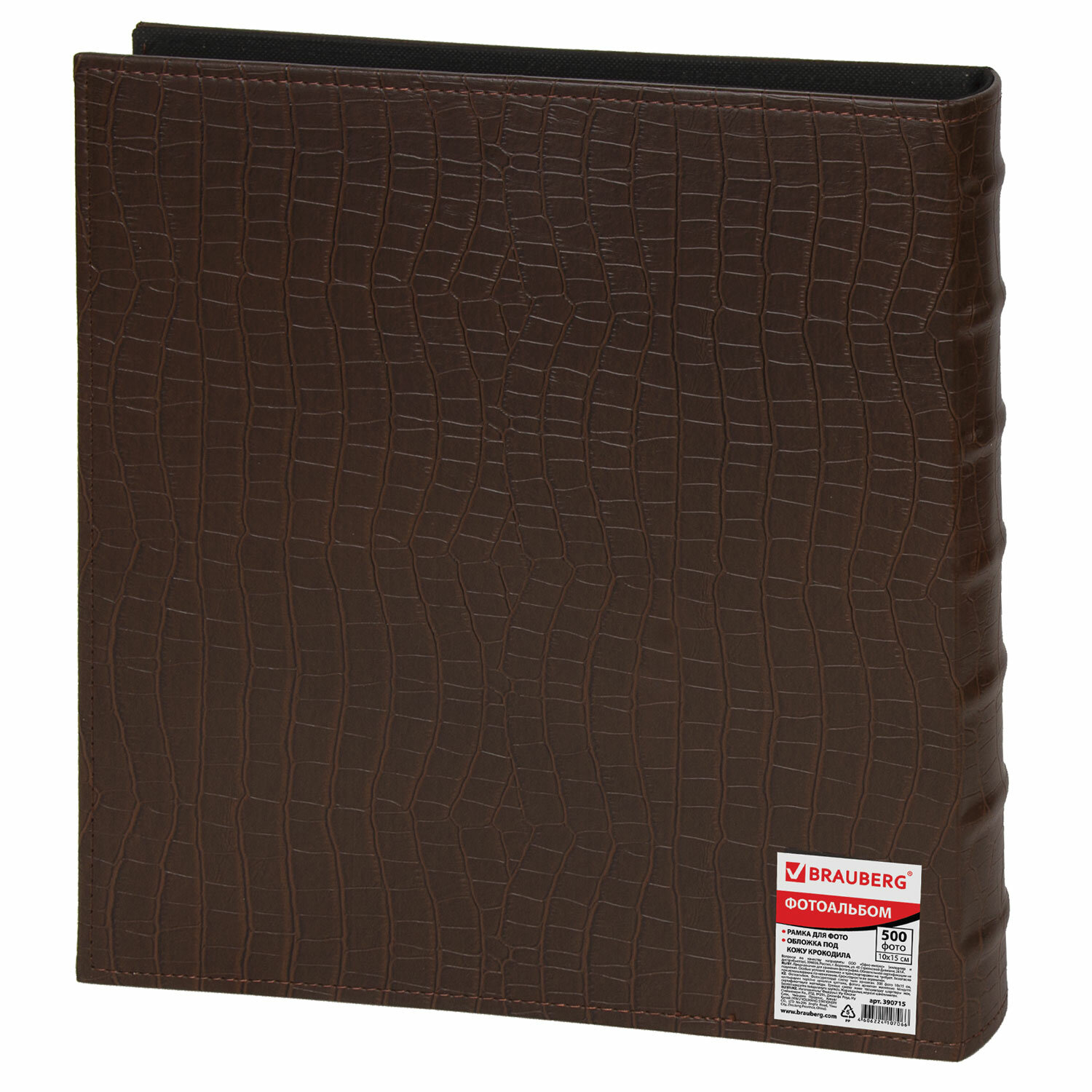 - Фотоальбом BRAUBERG на 500 фотографий 10х15 см, обложка под кожу крокодила, рамка для фото, коричневый, 390715