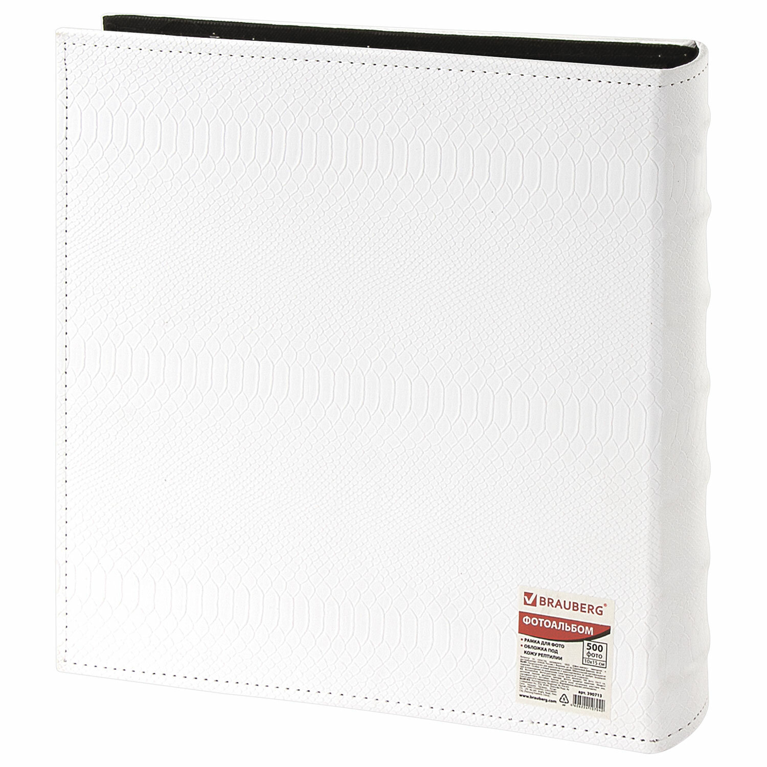 - Фотоальбом BRAUBERG на 500 фотографий 10х15 см, обложка под кожу рептилии, рамка для фото, белый, 390713